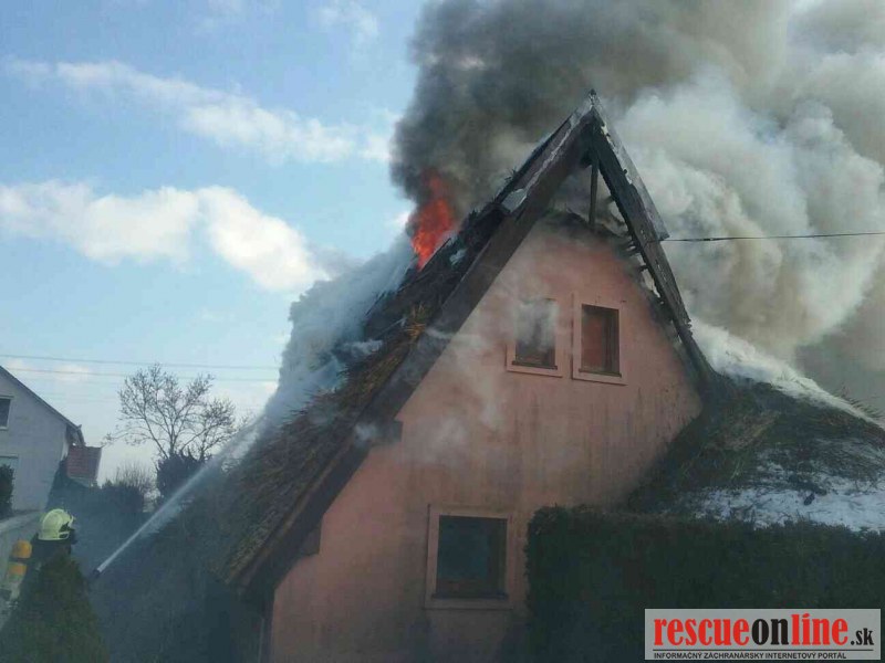 KR HaZZ Trnava |MM| Dňa 25.02.2018 krátko po 14.30 hod. bol ohlásený požiar trstinovej strechy rodinného domu v obci Trstená na Ostrove, okres Dunajská Streda. V čase príjazdu hasičov na miesto udalosti bola celá strecha a vnútorná časť budovy zachvátená plameňom. Na mieste udalosti zasahovali hasiči z Dunajskej Stredy a členovia DHZO Trstená na Ostrove, Gabčíkovo a Jurová a členovia KCZS Gabčíkovo dvoma C prúdmi a dvoma vysokotlakovými prúdmi za súčasného rozoberania konštrukcie strechy. Predbežnou príčinou vzniku požiaru bol úlet iskier z komína. Následkom požiaru vznikla majiteľovi rodinného domu priama materiálna škoda predbežne vyčíslená na 50 000,- Eur.