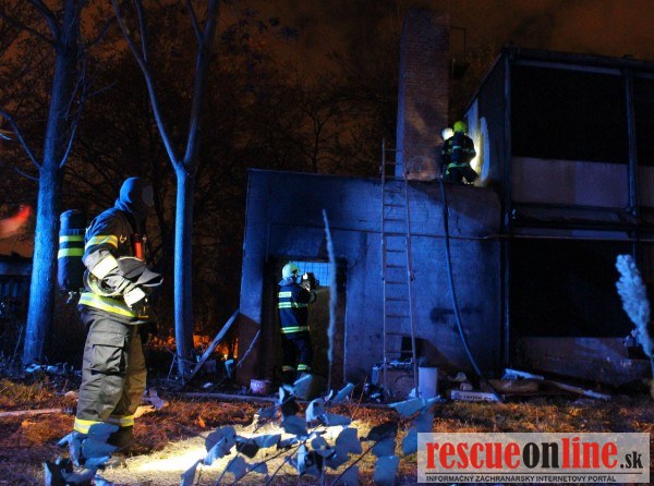 MVSR |MM| V utorok večer boli bratislavskí hasiči vyslaní k požiaru na Nerudovej ulici v Bratislave. Po príchode na miesto udalosti bolo zistené, že horí v unimobunkách a požiar sa rozširuje ďalej. Hasiči priestory prehľadali aby vylúčili prítomnosť osôb. Zasahovali 3 C prúdmi za súčasného rozoberania drevenej konštrukcie. Požiar sa hasičom podarilo zlikvidovať za 30 minút. Pri udalosti sa nikto nezranil.