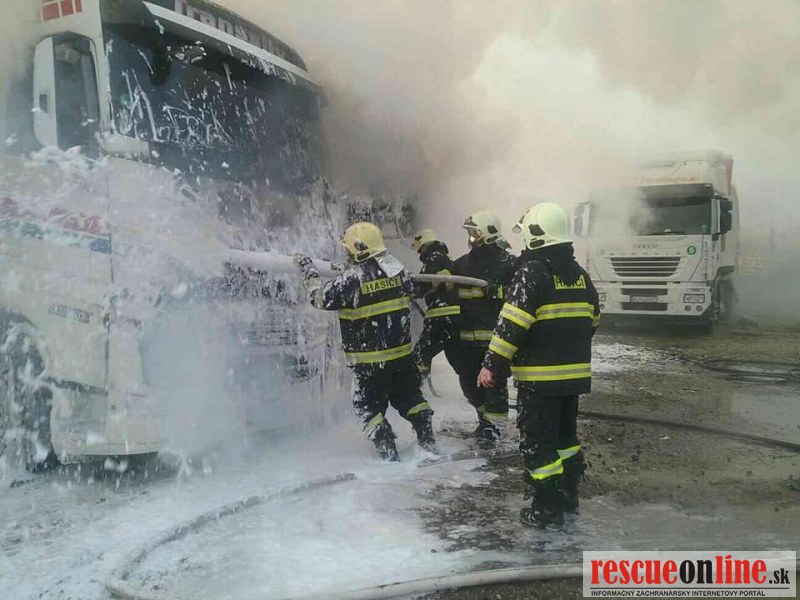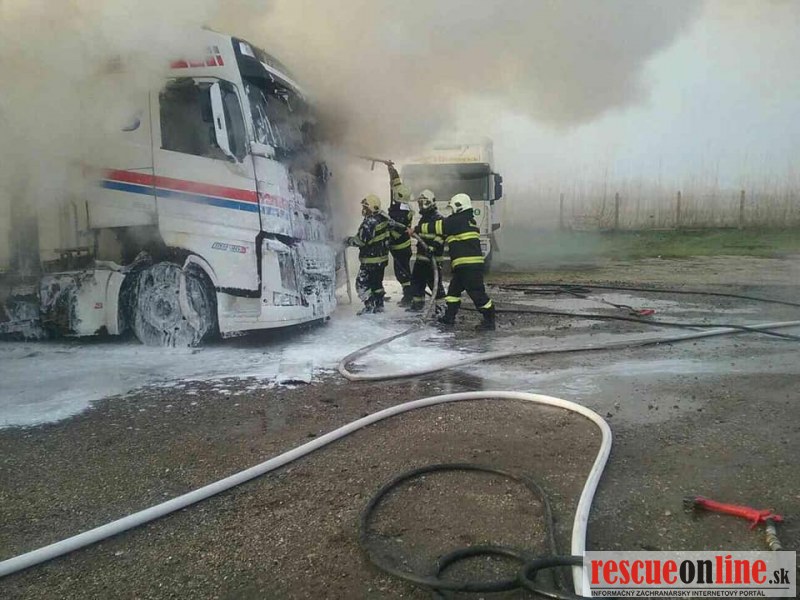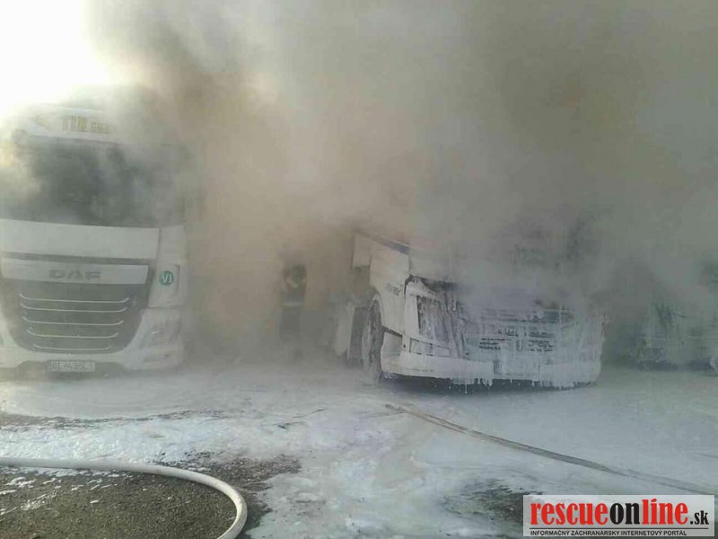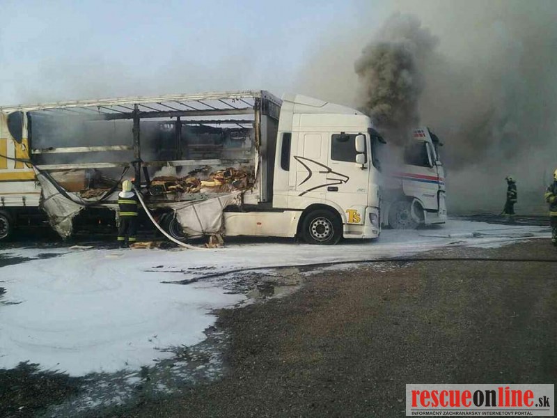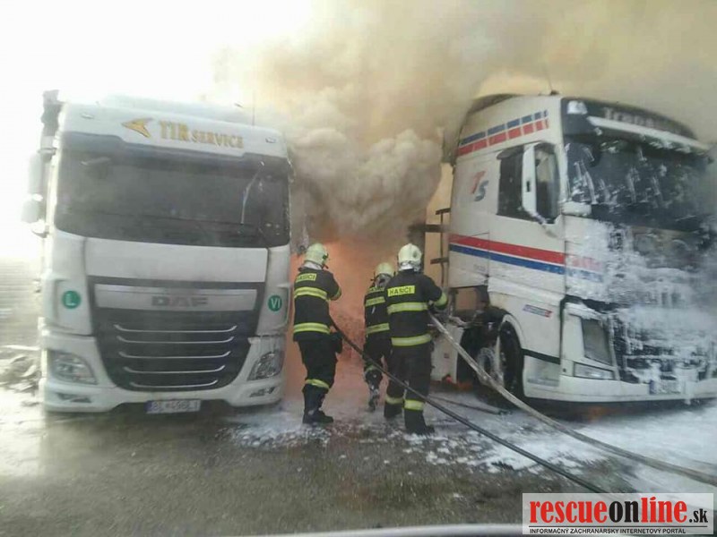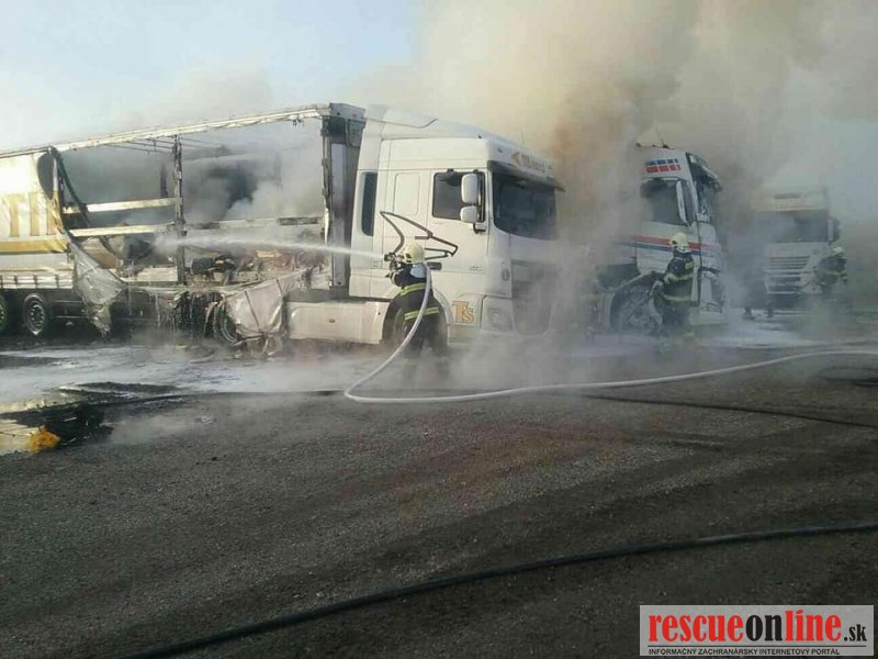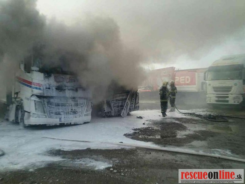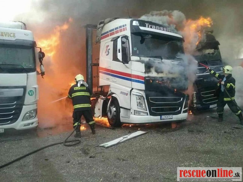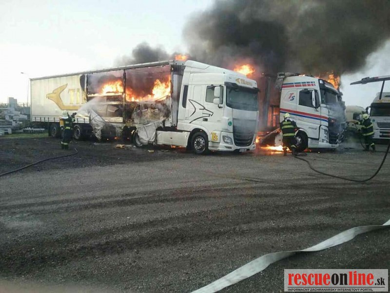 Prezídium HaZZ |MM| Hasiči momentálne zasahujú pri požiari na Veľkoúľanskej ulici v Sládkovičove. Požiar zasiahol jeden kamión a rozšíril sa na ďalšie dva vedľa stojace, pričom dva kamióny sú bez nákladu a v jednom sa nachádza náčinie do posilňovní. Pri udalosti zasahuje 8 profesionálov z Galanty a Serede a 4 dobrovoľní hasiči z Veľkých Úľan. Doposiaľ nedošlo k žiadnym zraneniam. Z dôvodu predbežne vyčíslenej škody na približne 300 tisíc eur smeruje na miesto expertízna skupina na zisťovanie príčin vzniku požiarov z PTEÚ.