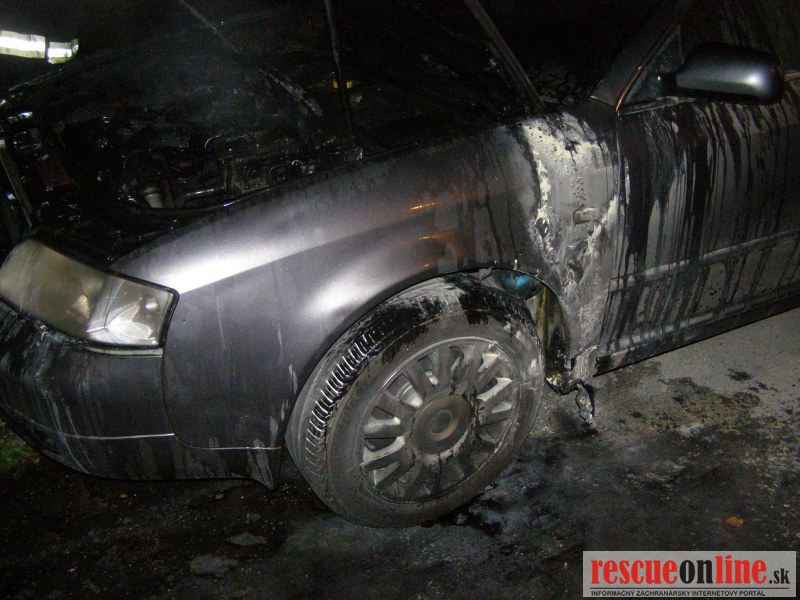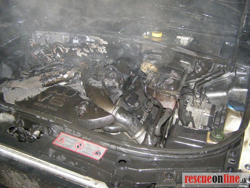KR HaZZ Trnava |MM| Dňa 08. januára 2014 bol približne o 23.15 hod. ohlásený požiar osobného motorového vozidla značky Audi A6 v obci Piešťany na Slnečnej ulici. Majiteľ vozidla sa snažil pred príchodom hasičov uhasiť požiar pomocou ručného hasiaceho prístroja, ale požiar sa mu uhasiť nepodarilo. Zasahujúci hasiči na zdolanie požiaru použili jeden vysokotlakový prúd. Následne vykonali na vozidle protipožiarne opatrenia a kontrolu úniku prevádzkových kvapalín. Únik sa nepotvrdil. Predpokladanou príčinou vzniku požiaru je skrat na elektroinštalácii vozidla, avšak príčina vzniku požiaru je stále predmetom vyšetrovania. Na mieste udalosti zasahovali príslušníci Okresného riaditeľstva Hasičského a záchranného zboru v Piešťanoch, hasičská stanica Piešťany. Požiarom vznikla majiteľovi vozidla priama materiálna škoda predbežne vyčíslená na 3.000,- €.