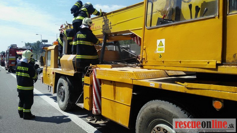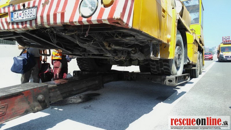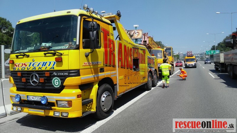 SOSTEAM SLOVAKIA |MM| Pravdepodobne technická závada zapríčinila požiar vozidla za tunelom Sitina v smere do Petržalky. Požiar v motorovom priestore žeriava mal vzniknúť počas jazdy a jeho vodič si ho zvládol sám uhasiť.