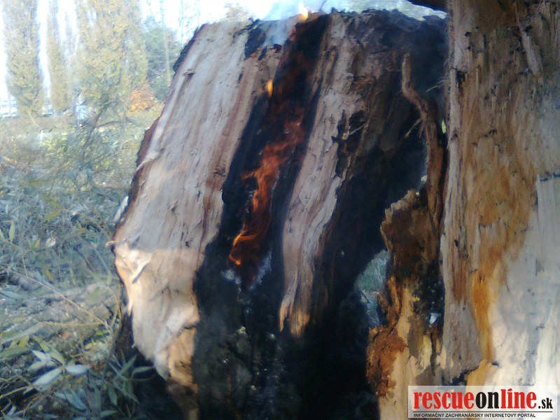 Na operačné stredisko OR HaZZ v Senici bol 1. novembra 2011 o 08:40 hod. nahlásený požiar stromu na Štefánikovej ulici v blízkosti pekárne Faun. K požiaru bola vyslaná jednotka z hasičskej stanice Senica, traja príslušníci HaZZ s technikou MB Atego. Po príjazde na miesto udalosti bolo prieskumom zistené, že strom horí zvnútra. Jednotka HaZZ na hasenie použila vysokotlaký prúd. Pretože hasenie bolo neúčinné, na miesto bol povolaný vedúci pracovník technických služieb, aby bolo zabezpečené zrezanie stromu. Zástupca technických služieb sa vyjadril, že nakoľko je sviatok, nemá k dispozícii ľudí ani techniku. Z toho dôvodu veliteľ zásahu povolal na miesto techniku AP27 T815. Po príjazde plošiny príslušníci HaZZ orezali veľké konáre stromu, aby neprišlo k poškodeniu vedľa stojacej budovy. Po orezaní veľkých konárov následne zvyšok stromu zrezali a zlikvidovali požiar kmeňa. Po likvidácii požiaru sa jednotka o 11:15 hod. vrátila na základňu.