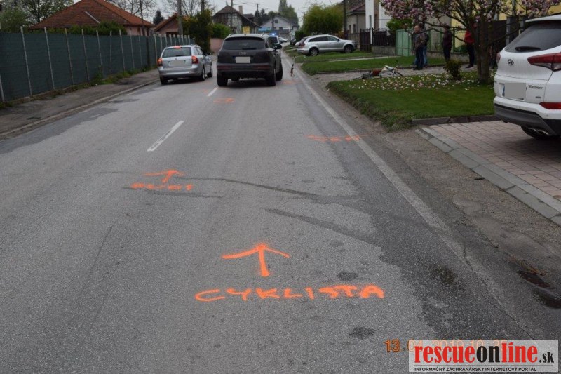 KRPZ Trnava |MM| Dopravní policajti zaevidovali za posledné dni dve dopravné nehody s účasťou cyklistu. K prvej nehode došlo cez víkend v okrese Galanta. 58 ročný vodič išiel na aute Audi Q7 po obci Trstice. V rovnakom smere išla po ceste aj 78 ročná miestna žena na bicykli. Pri prejazde ju riadne predišiel a pokračoval v ceste ďalej. O niekoľko metrov ďalej vzápätí pri parkovaní do dvora domu si nadbehol do protismeru a začal cúvať. Pri cúvaní si nevšimol, že staršia pani na bicykli práve prechádza po ceste a došlo k stretu. Pri nehode utrpela žena viaceré zranenia a na základe rozhodnutia lekára bola letecky v ohrození života transportovaná do nemocnice. Polícia alkohol u vodiča pri orientačnej dychovej skúške nezistila.
