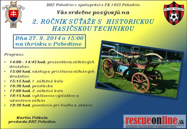 Pozvánka na 2. ročník súťaže s historickou hasičskou technikou v Pobedime