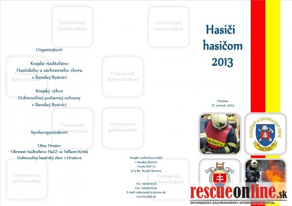 Pozvánka na slávnostné podujatie HASIČI – HASIČOM 2013
