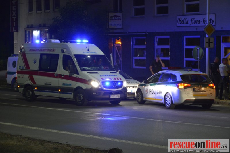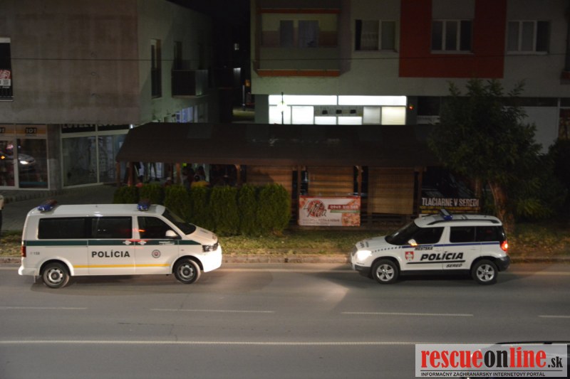 Na mieste udalosti momentálne zasahujú 4 hliadky PZ SR a hliadka Mestskej polície. Premávka pred svetelnou križovatkou je z časti blokovaná vozidlom Rýchlej zdravotníckej pomoci. Na mieste je prítomný psovod PZ so služobným psom a v okolí sa ozývajú nadávky a krik.