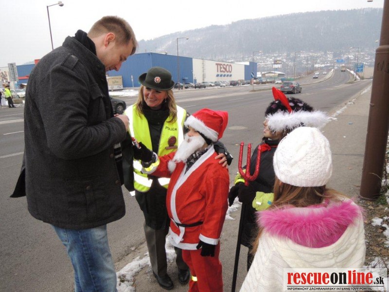 V utorok 6. decembra na ceste I/18 v Žiline a na ulici Ľavobrežnej zastavených a kontrolovaných vodičov policajti nepokutovali, avšak tých zodpovedných, deti prezlečené za Mikuláša, anjela a čerta odmenili drobnou čokoládovou pozornosťou.