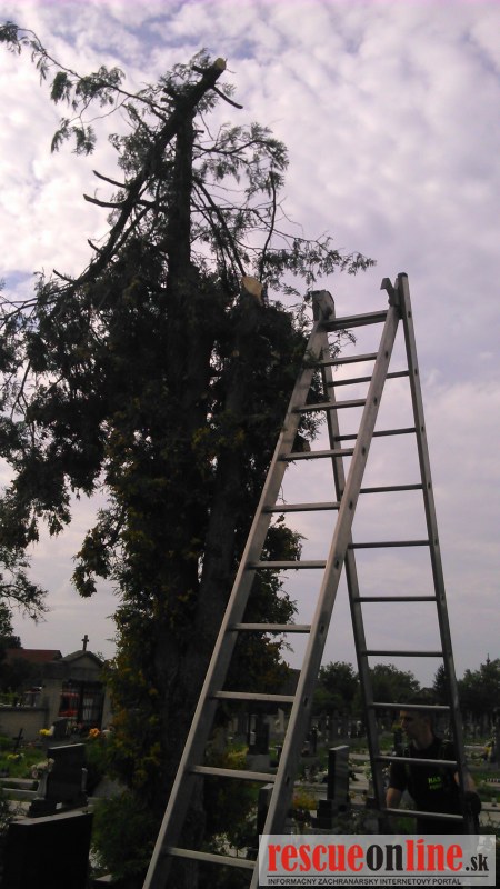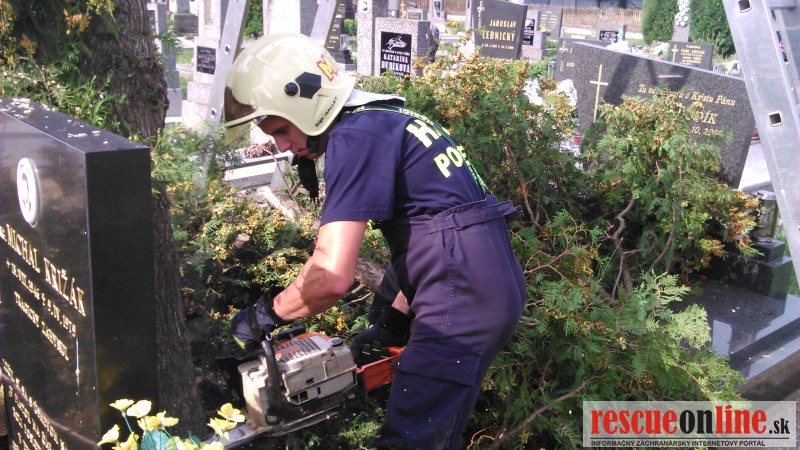 Po príchode na miesto bolo zistené, že sa jedna o strom - tuja v blízkosti hrobu a jeho zlomením by mohlo prísť ku škode majetku občanov - poškodiť náhrobné kamene.