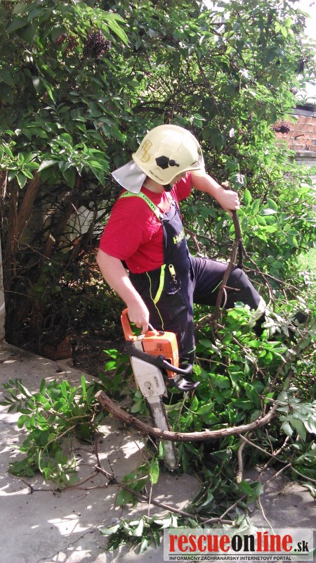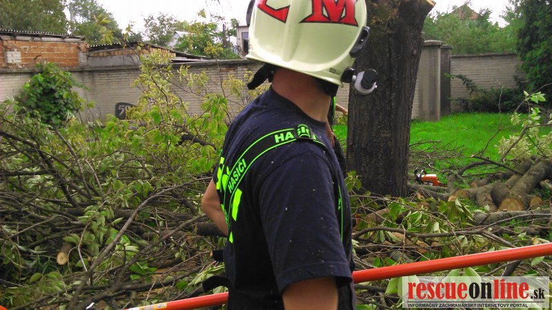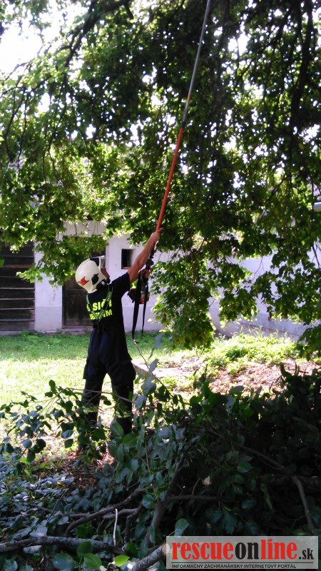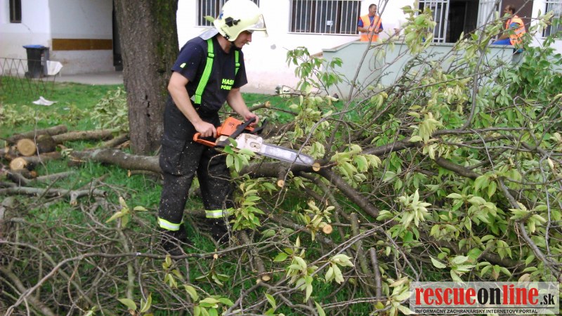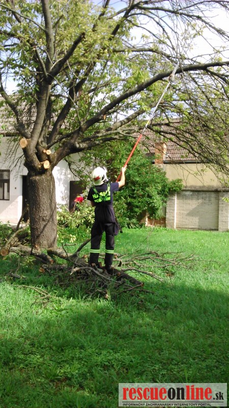 Jednotka DHZO Pobedim bola cez obec Pobedim požiadaná o technickú pomoc - orezanie konárov na príjazdovej ceste k ZŠ Pobedim, v areáli ZŠ a okolia miestneho kostola.