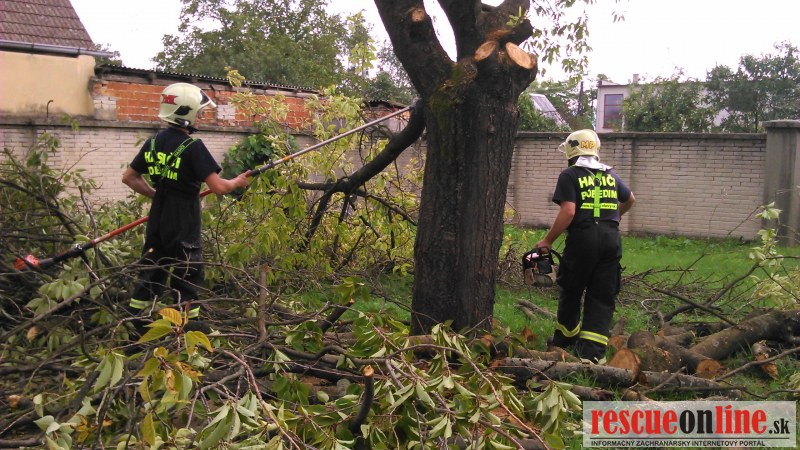 Jednotka DHZO Pobedim použila na odstránenie spadnutého stromu motorovú pílu Stihl 039 a odvetovaciu pílu Husquarnu.