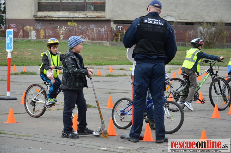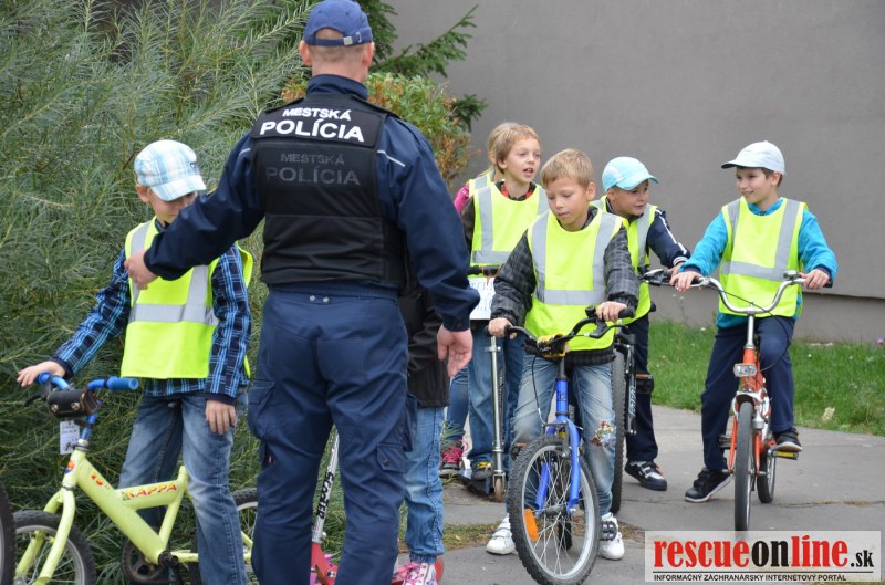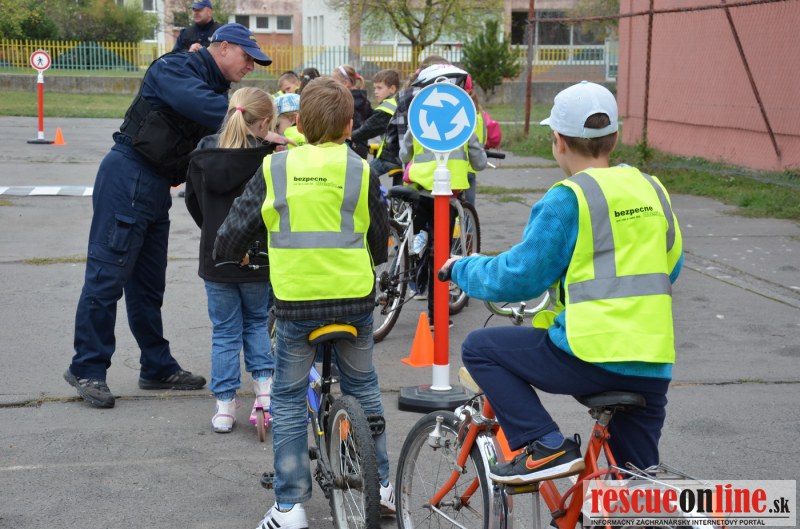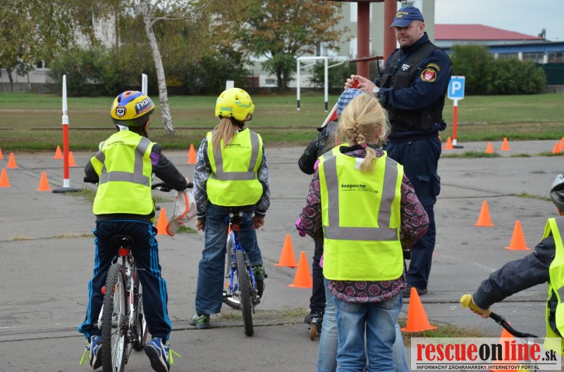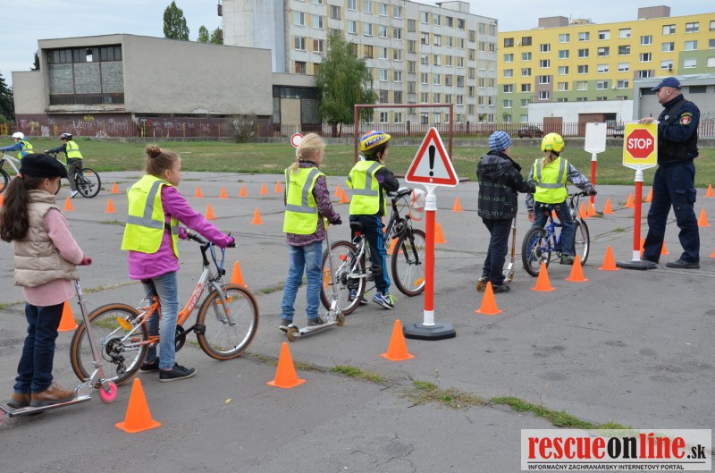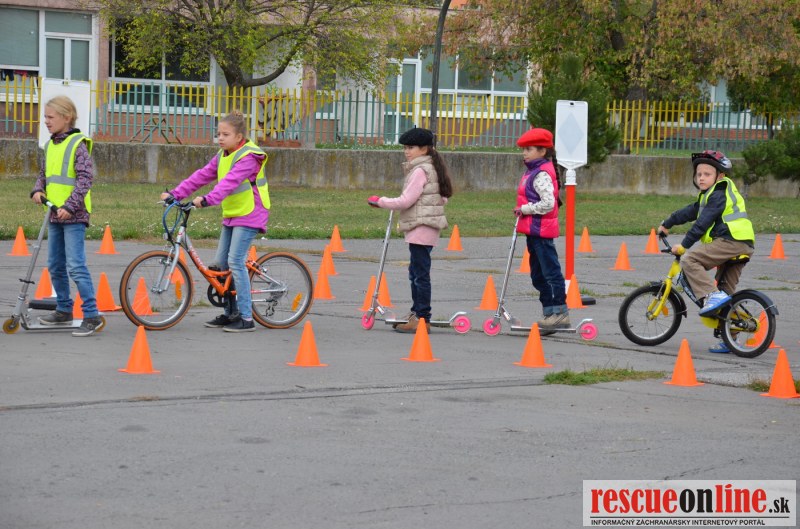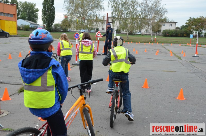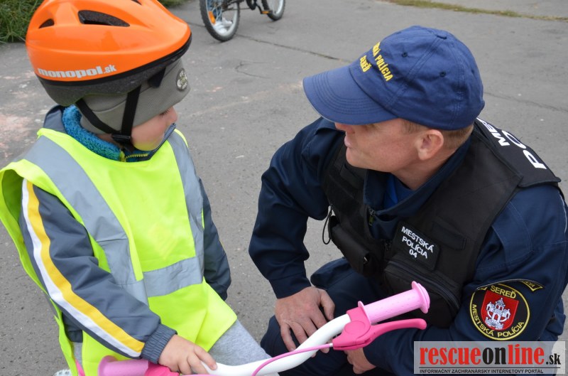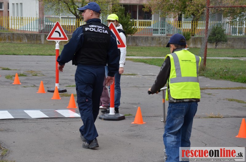 Sereď | Jeden z posledných príjemne teplých dní tohto roka využili aj žiaci základnej školy J. Fándlyho na to, aby si zopakovali pravidlá cestnej premávky. Do školy si priniesli bicykle a kolobežky, s ktorými asi v pol hodinových intervaloch postupne vyšli na ihrisko, kde ich čakali dopravné značky prenosného dopravného ihriska projektu Bezpečné mesto. Odborne sa deťom venovali dvaja policajti Mestskej polície Miloš Marcinkech a Radovan Horváth, ktorí deťom podrobne vysvetlili ako sa majú správať na ceste, funkciu každej dopravnej značky a nasimulovaných dopravných situácií.