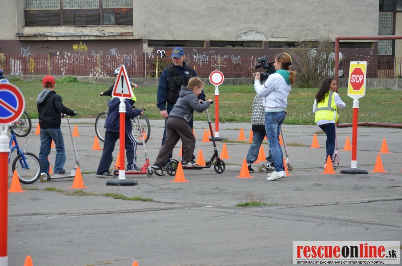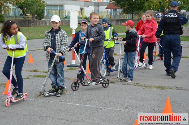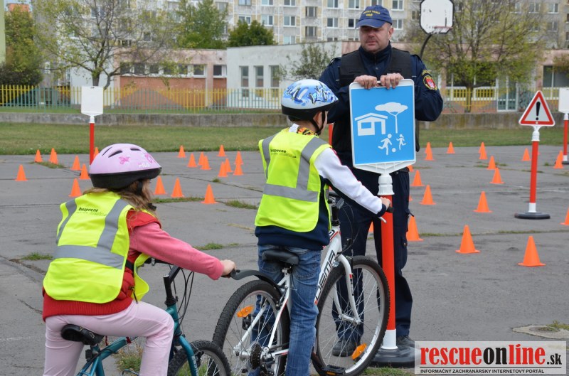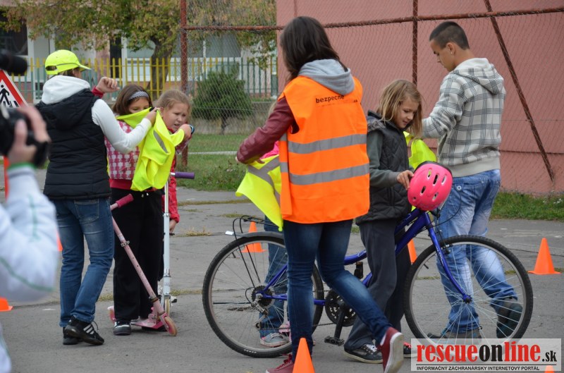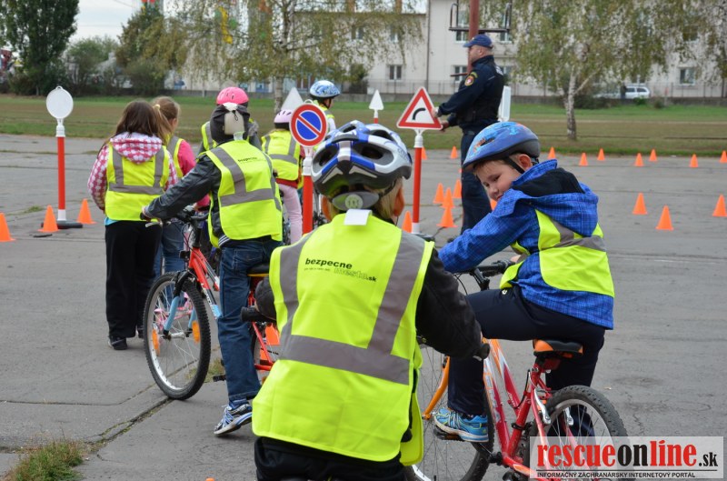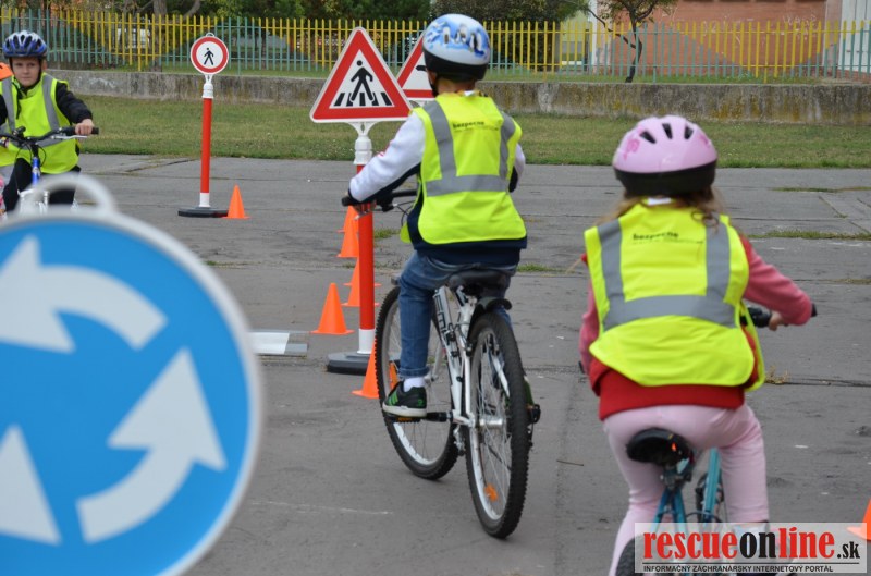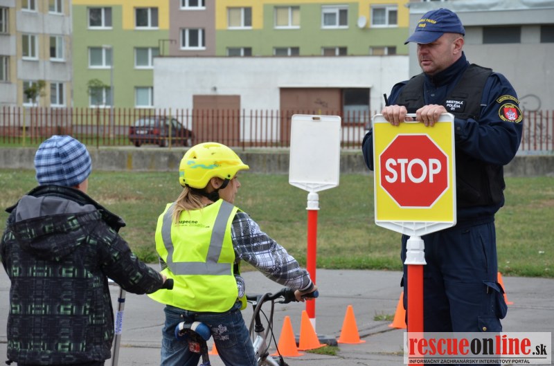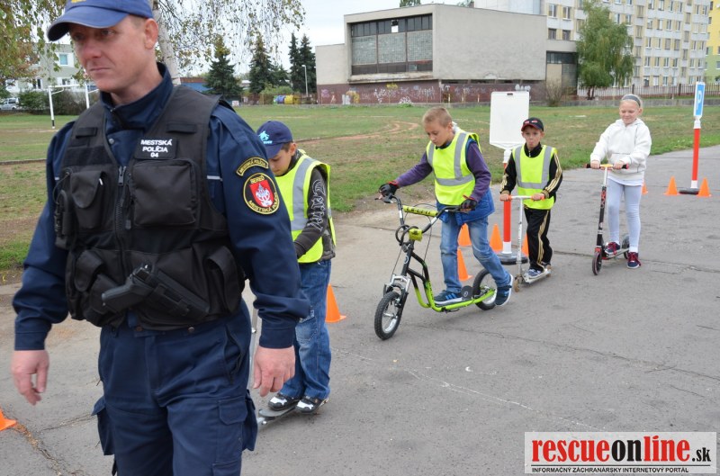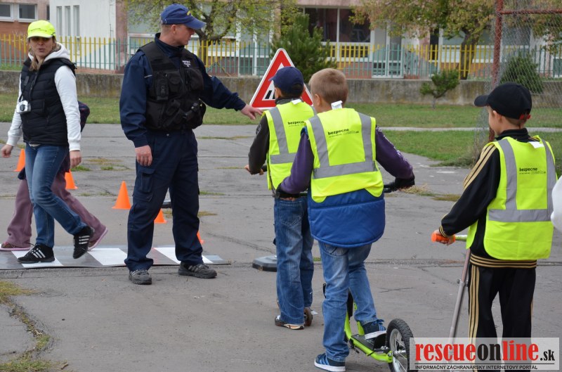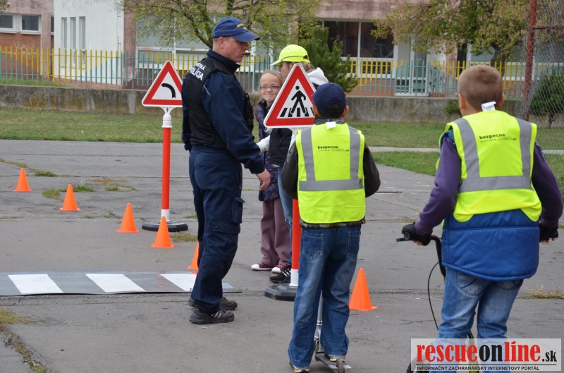 Sereď | Jeden z posledných príjemne teplých dní tohto roka využili aj žiaci základnej školy J. Fándlyho na to, aby si zopakovali pravidlá cestnej premávky. Do školy si priniesli bicykle a kolobežky, s ktorými asi v pol hodinových intervaloch postupne vyšli na ihrisko, kde ich čakali dopravné značky prenosného dopravného ihriska projektu Bezpečné mesto. Odborne sa deťom venovali dvaja policajti Mestskej polície Miloš Marcinkech a Radovan Horváth, ktorí deťom podrobne vysvetlili ako sa majú správať na ceste, funkciu každej dopravnej značky a nasimulovaných dopravných situácií.