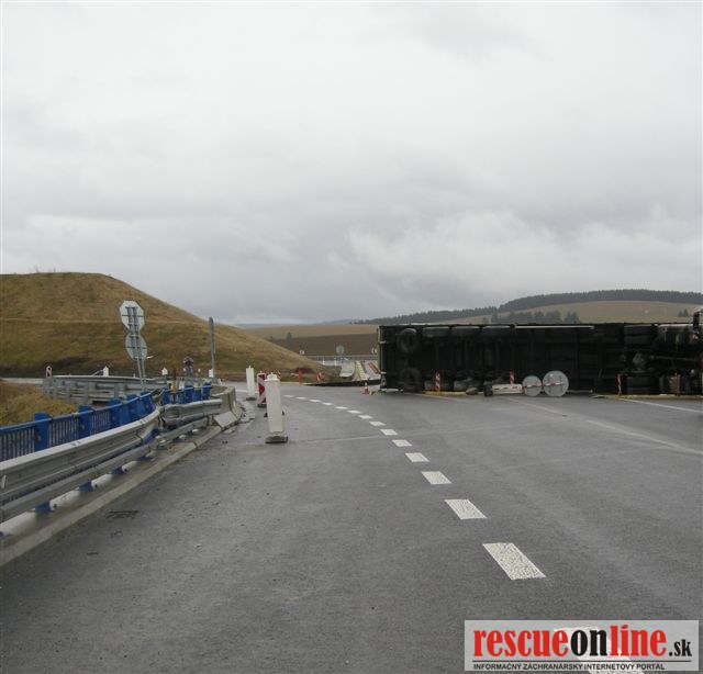 KRPZ Žilina |MM| V utorok (11. februára) predpoludním došlo v katastri mesta Tvrdošín na zjazde z rýchlostnej cesty R3 k dopravnej nehode. 24 ročný vodič (z Poľska) viedol nákladné motorové vozidlo Man s návesom v smere od Poľska na Tvrdošín. Neprispôsobil rýchlosť jazdy svojim schopnostiam, stavu a povahe vozovky. Následne s vozidlom dostal šmyk a s jazdnou súpravou sa prevrátil. Pri dopravnej nehode k zraneniu osôb nedošlo. U vodiča bola vykonaná dychová skúška s negatívnym výsledkom. Na vozidlách vznikla celkovo predbežná škoda vo výške 12.000.-€.
