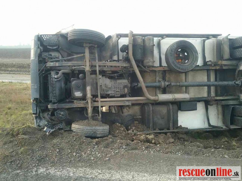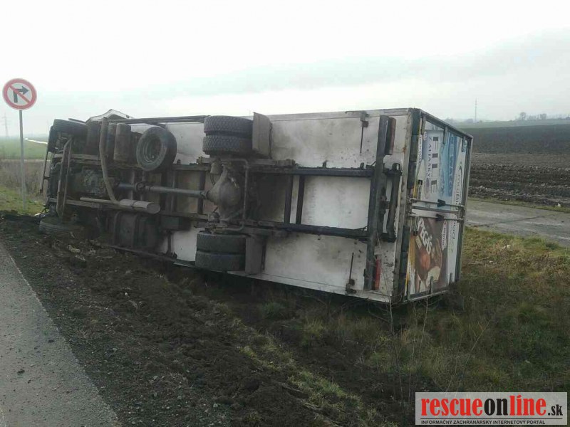 KR HaZZ Trnava |MM| Dnes (8. januára 2018) krátko po 10.00 hod. bola ohlásená dopravná nehoda nákladného motorového vozidla v Seredi. Po príchode hasičov na miesto udalosti bolo zistené, že sa jedná o dopravnú nehodu nákladného vozidla prevráteného na pravom boku mimo vozovky. V dôsledku dopravnej nehody došlo k úniku prevádzkových kvapalín, ktoré hasiči zachytili pomocou sorpčných materiálov. Na vozidle vykonali protipožiarne opatrenia. Odtiahnutie vozidla si zabezpečil vodič vozidla. Na mieste udalosti zasahovali hasiči zo Serede.
