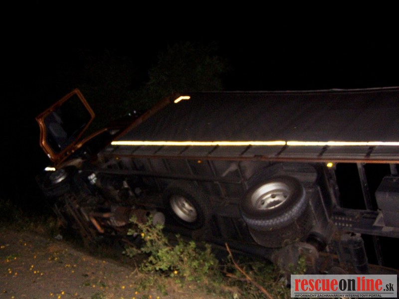 KR HaZZ Trnava |MM| Na ohlasovňu požiarov hasičskej stanice vo Veľkom Mederi bola dňa 10. júla 2012 o 22:31 hod. prostredníctvom Koordinačného strediska IZS v Trnave nahlásená dopravná nehoda kamióna v blízkosti obce Okoč (okres Dunajská Streda). Na zatiaľ bližšie nešpecifikované miesto udalosti boli vyslaní traja príslušníci z hasičskej stanice vo Veľkom Mederi s technikou MB VARIO, ktorí podľa dovtedy dostupných informácií začali prehľadávať cestu medzi obcami Okoč a Brestovec, pričom na základe ďalších informácií bolo spresnené miesto udalosti, a síce medzi obcou Okoč a osadou Nový Golyáš. Po príchode na miesto udalosti bolo prieskumom zistené, že sa jedná o dopravnú nehodu kamióna, ktorý bol prevrátený na boku v priekope. Pri tejto dopravnej nehode neprišlo k zraneniu žiadnej osoby a z havarovaného kamióna nevytekali žiadne prevádzkové kvapaliny. Príslušníci HaZZ vykonali na vozidle protipožiarne opatrenia, vytýčili miesto nehody dopravnými kužeľmi a počkali na príchod dopravnej polície a majiteľa kamióna, ktorému bolo následne miesto udalosti odovzdané. Hasičská jednotka sa po zdokumentovaní udalosti a zbalení vecných prostriedkov vrátila na základňu.