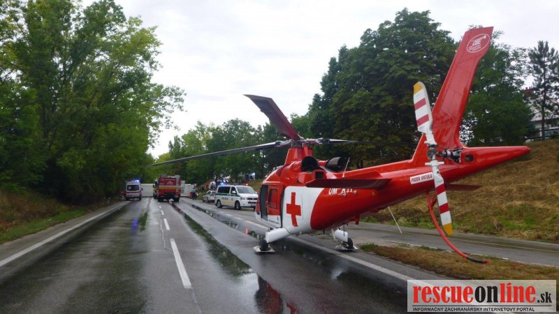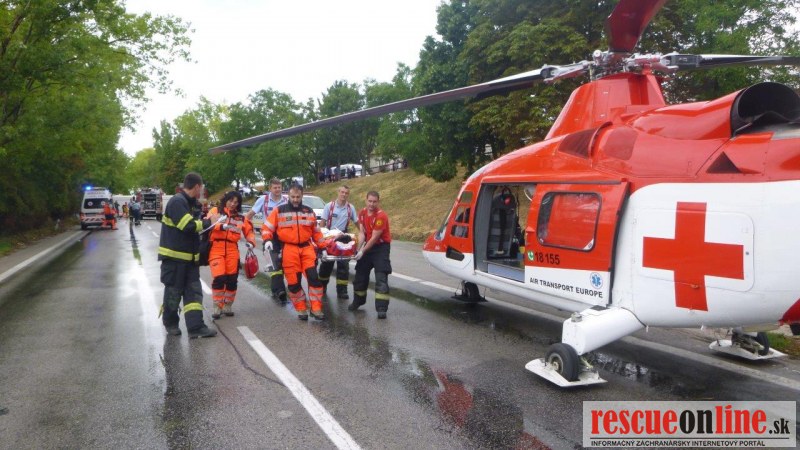 Dnes ráno bola posádka leteckých záchranárov z Bratislavy privolaná k hromadnej dopravnej nehode, ku ktorej došlo na ceste medzi obcami Bučany (okr. Trnava) a Trakovice (okr. Hlohovec). Na tomto úseku sa prevrátil autobus, v ktorom sa viezlo viac ako 50 cestujúcich, z toho 25 sa zranilo. Po pristáti záchranárskeho vrtuľníka priamo na ceste si lekárka leteckých záchranárov prevzala do svojej starostlivosti najťažšie zranenú, 52-ročnú pacientku, ktorá utrpela poranenie chrbtice, hornej končatiny a brucha. Po ošetrení bola preložená na palubu vrtuľníka a v stabilizovanom stave, pri vedomí letecky transportovaná do Univerzitnej nemocnice Bratislava – Kramáre. Následne sa vrátila posádka späť k miestu dopravnej nehody pre 60-ročného muža s poranením hrudníka a hornej končatiny. Aj tento pacient bol pri vedomí, po ošetrení bol vrtuľníkom transportovaný na centrálny príjem bratislavskej Univerzitnej nemocnice v Ružinove.