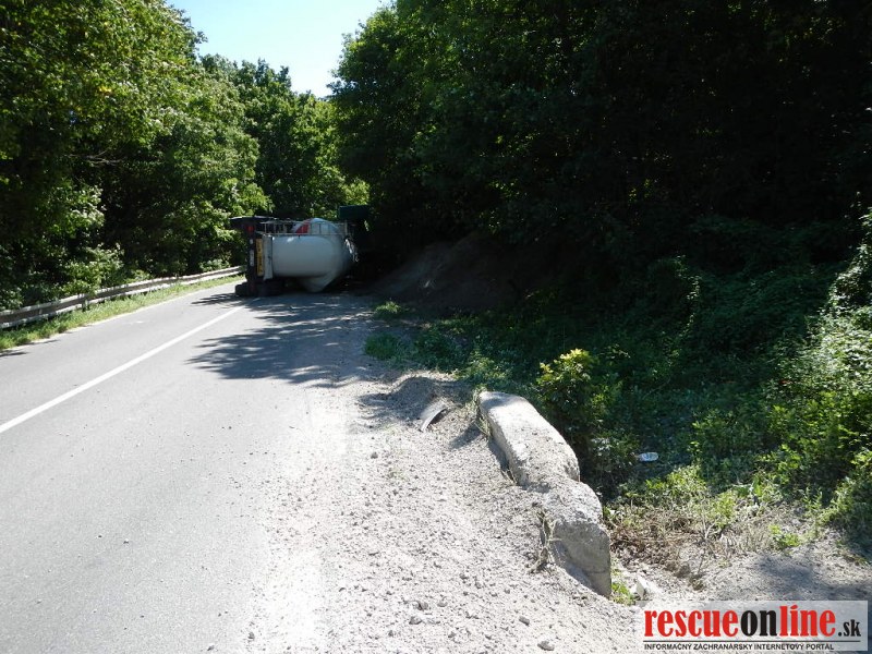 Pri Bukovej sa prevrátilo nákladné auto s cementom