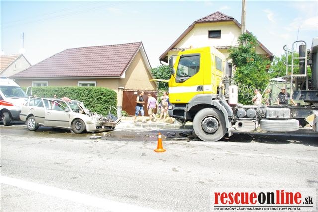 KRPZ Trnava |MM| Polícia vyšetruje príčiny dopravnej nehody, ku ktorej došlo včera, 8. 8. poobede v obci Trstín. Vodič Škody Octavie išiel smerom od Jablonice, keď z nezistených príčin prešiel do protismeru, kde sa čelne zrazil s ťahačom Renaultu, ktorý sa snažil zrážke zabrániť intenzívnym brzdením. Pri dopravnej nehode došlo k ťažkému zraneniu 55 ročného muža zo Smoleníc, ktorý bol po nehode hospitalizovaný vrtuľníkom do bratislavskej nemocnice. 53 ročná spolujazdkyňa, ktorá bola pri nehode ťažko zranená, bola prevezená RZP do trnavskej nemocnice. Vodič ťahača vyviazol bez zranenia. Okolnosti dopravnej nehody polícia naďalej skúma.