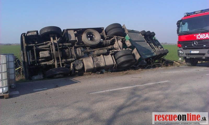 Vodič kamióna utrpel následkom dopravnej nehody ľahšie zranenia. Na mieste nehody zasahovali hasiči z Galanty, Serede a Trnavy.