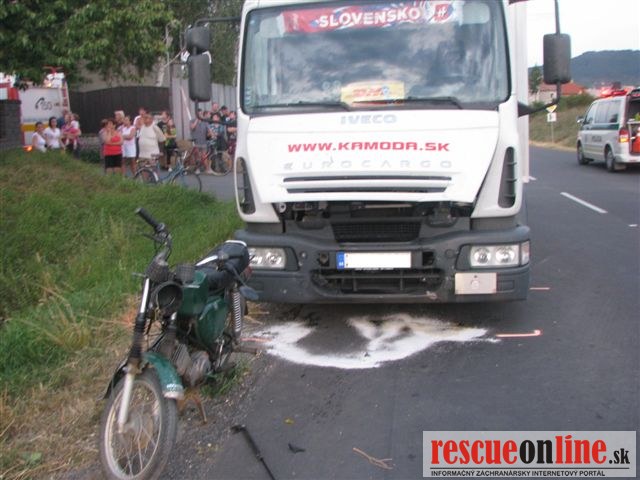KRPZ Banská Bystrica |MM| Polícia v Lučenci vyšetruje dopravnú nehodu, ktorá sa stala vo štvrtok (30.8.) 18.20 hodine, na ceste 1/71 v katastri mesta Fiľakovo. Zo zavinenia dopravnej nehody je dôvodne podozrivý 21-ročný vodič a majiteľ motocykla Simson, bez evidenčného čísla z Fiľakova. Vodič motocykla, ktorý jazdil bez ochrannej prilby, v dôsledku nedania prednosti v jazde, vošiel z účelovej komunikácie oproti Poľnej ulici vo Fiľakove, do jazdnej dráhy, po hlavnej ceste idúcemu nákladnému motorovému vozidlu Iveco. 26-ročný vodič nákladného auta jazdil v smere od Biskupíc na Lučenec a pre krátku vzdialenosť nemohol zrážke zabrániť. Pri dopravnej nehode sa zranila 19-ročná spolujazdkyňa z motocykla, z Lučenca, ktorá bola taktiež bez ochrannej prilby. Utrpela ťažké zranenia hlavy s ktorými bola leteckou záchrannou službou prevezená do nemocnice v Banskej Bystrici. Dopravná nehoda je v štádiu vyšetrovania, vodič motocykla je podozrivý zo spáchania prečinu ublíženia na zdraví, na mieste mu bol zadržaný vodičský preukaz.