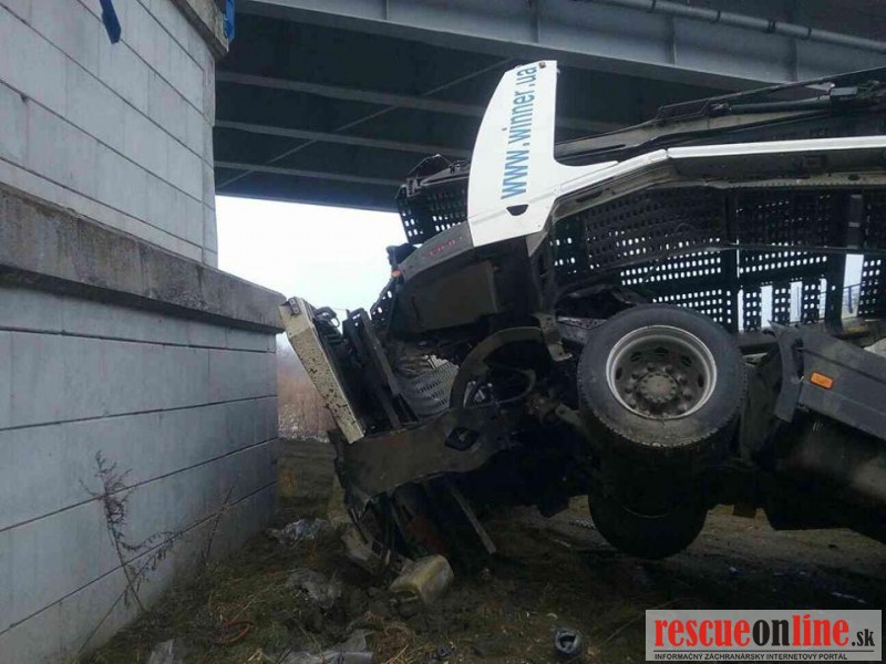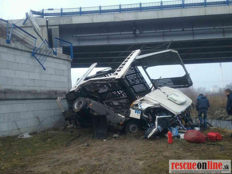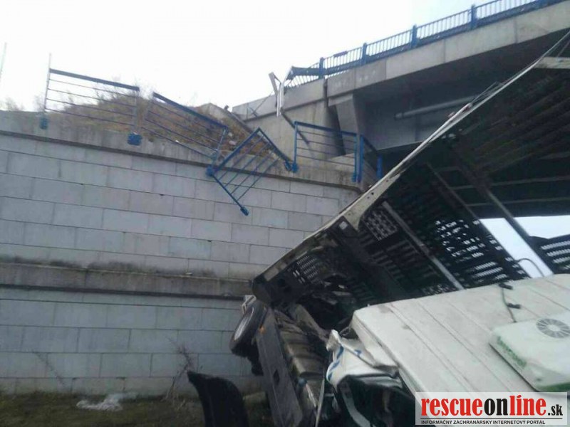 Pri dopravnej nehode spadol kamión pod most