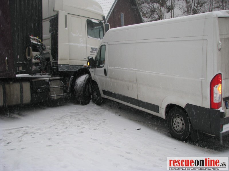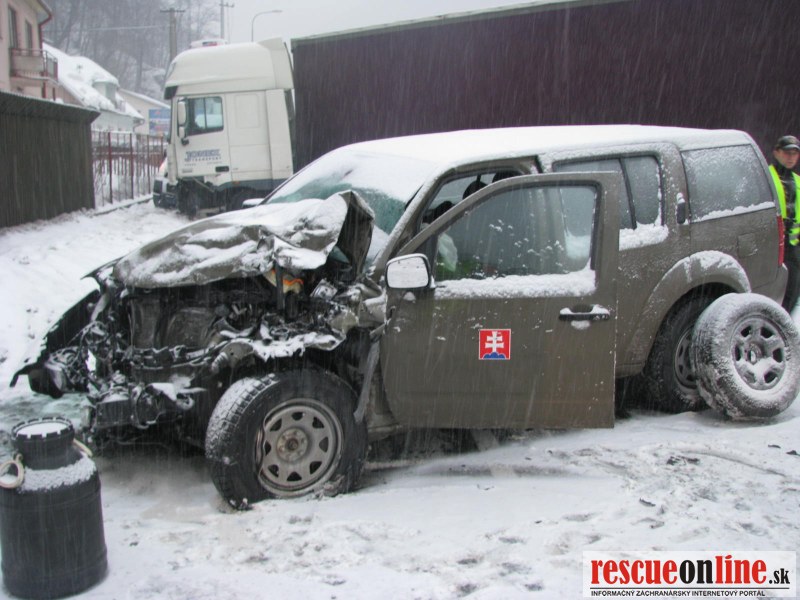 KRPZ Banská Bystrica |MM| Polícia v Banskej Bystrici objasňuje dopravnú nehodu, ktorá sa stala dnes ráno o 6.50 hodine, na ceste I/59 v katastri Banskej Bystrice. 28-ročný vodič vojenského motorového vozidla Nissan Pathfinder z Košíc, pri jazde v smere Nový Svet - Banská Bystrica, nedodržal bezpečnú vzdialenosť od vozidla Fiat Punto, ktoré išlo pred ním a ktoré viedol 40-ročný vodič z Banskej Bystrice. Vodič na Fiate odbočoval vľavo a zozadu do neho narazil vodič Nissanu, následkom čoho Fiat Punto aj s Nissanom prešli do protismernej časti vozovky, kde došlo k zrážke s nákladným motorovým vozidlom DAF s návesom, ktoré viedol 57-ročný vodič z Estónska. Kamión sa čelne zrazil s vozidlom Nissan a do zadného kolesa kamiónu narazilo vozidlo Fiat Punto. Kamión skrížilo naprieč vozovkou, pričom 42-ročný vodič nákladného motorového vozidla Fiat Ducato z Uľanky, jazdiaci v smere Nový Svet - Banská Bystrica, narazil do skríženého ťahača. Pri nehode sa vážnejšie zranil vodič Nissanu, utrpel zlomeninu ľavej nohy a ľahko sa zranil aj jeho spolujazdec. Požitie alkoholických nápojov u vodičov zistené nebolo. Škoda na vozidlách je odhadnutá na 19.000 eur.