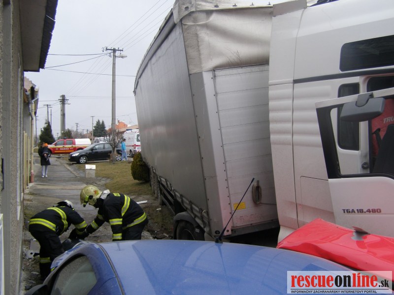 KR HaZZ Trnava |MM| Na OR HaZZ v Trnave bola v utorok 13. marca 2012 o 07:25 hod. nahlásená v obci Bíňovce, okr. Trnava, dopravná nehoda nákladného motorového vozidla a troch osobných motorových vozidiel. Na miesto udalosti bola vyslaná jednotka HaZZ, štyria príslušníci s technikou MB Atego. Po príjazde na miesto udalosti bolo zistené, že po dopravnej nehode sa nákladné vozidlo Man D26 nachádzalo narazené do dvoch stojacich osobných vozidiel Škoda Felícia a Fiat Punto bez pasažierov a účastným dopravnej nehody sa stalo aj dodávkové vozidlo MB Vito, v ktorom boli traja dospelí a jedno dieťa, všetci zranení. Okrem toho bol zranený aj vodič kamiónu. Veliteľ zásahu si vyžiadal na miesto udalosti vozidlo MB Sprinter a technické prostriedky na prečerpanie nafty z poškodenej nádrže ťahača, v množstve približne 200 litrov. Do príchodu Zdravotnej záchrannej služby príslušníci HaZZ poskytovali zraneným osobám prvú predlekársku pomoc. Následne zabezpečili vozidlá proti vzniku požiaru a proti ďalšiemu úniku prevádzkových kvapalín. Uniknuté prevádzkové kvapaliny boli zasypané sorbentom Vapex v množstve 30kg. Príslušníci HaZZ odstránili z vozovky za pomoci cestárov, ktorí sa taktiež dostavili na miesto udalosti, úlomky z poškodených vozidiel. Pretože pri dopravnej nehode bol poškodený stĺp elektrického vedenia, veliteľ zásahu si vyžiadal poruchovú službu. Zranené osoby boli po príjazde ZZS ošetrené a odvezené na ďalšie ošetrenie. Po ukončení zásahu sa jednotka o 09:23 hod. vrátila na základňu.