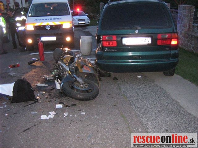 KRPZ Banská Bystrica |MM| Polícia v Žiari nad Hronom vyšetruje dopravnú nehodu, ktorá sa stala v pondelok (17.9.) o 18.40 hodine, v obci Nová Baňana ulici Hrádza, v stúpaní pred rodinným domom. 37-ročný vodič motocykla SUZUKI, z okresu Rokycany v Českej republike, viedol motocykel v smere od centra Novej Bani na ulicu Kútovci, pričom pred rodinným domom z doposiaľ nezistených príčin, prednou časťou motocykla narazil do zadnej ľavej bočnej strany, v tom čase sa tu otáčajúceho osobného motorového vozidla Volkswagen Sharan. Ku zrážke vozidiel došlo v strede cesty. Motocyklista a jeho 27-ročná spolujazdkyňa z Novej Bane, mali počas jazdy na hlavách riadne upevnené ochranné prilby. Následkom dopravnej nehody utrpeli motocyklista aj spolujazdkyňa ťažké zranenia, ktorým na mieste podľahli. Prípadné požitie alkoholického nápoja u vodiča motocykla bude skúmané počas nariadenej súdnej pitvy. U 52-ročného vodiča osobného motorového vozidla z Novej Bane, alkohol zistený nebol. Škoda na vozidlách je odhadnutá na 2500 eur. Vo veci bolo začaté trestné stíhanie pre prečin usmrtenia a dopravná nehoda je v štádiu vyšetrovania.
