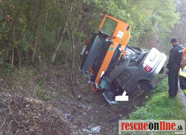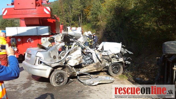 MVSR |MM| Hasiči zo Žiliny a hasiči zo Záchrannej brigády v Žiline zasahovali v piatok 10. októbra 2014 v doobedňajších hodinách pri dopravnej nehode, ktorá sa stala v katastri obce Divinka v okrese Žilina. Pri čelnej zrážke nákladného a osobného motorového vozidla medzi obcami Marček a Divinka zahynuli dvaja ľudia a dvaja sa zranili. Obidve vozidlá zostali po nehode v priekope. Hasiči zabezpečili havarované vozidlá proti vzniku požiaru, nadvihli nákladné vozidlo pomocou žeriavu a vyslobodili z osobného auta účastníkov dopravnej nehody. Nehodu hasičom ohlásili niekoľko minút po ôsmej hodine ráno. Na mieste zrážky zasahovali všetky záchranné zložky. K udalosti privolali aj zamestnancov Obvodného úradu životného prostredia. Cesta druhej triedy bola počas zásahu uzavretá v oboch smeroch.