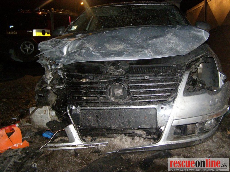 KR HaZZ Trnava | Na ohlasovňu požiarov OR HaZZ v Dunajskej Strede bola dňa 26.2.2013 o 19:46 hod. nahlásená prostredníctvom Koordinačného strediska IZS v Trnave dopravná nehoda dvoch osobných motorových vozidiel so zakliesnenými osobami na hlavnej ceste v obci Veľké Blahovo (okres Dunajská Streda). Na miesto udalosti boli vyslaní štyria príslušníci z hasičskej stanice v Dunajskej Strede s technikou MB ATEGO. Po príjazde na miesto zásahu a po vykonaní prvotného prieskumu bolo zistené, že na nahlásenom mieste prišlo k zrážke dvoch osobných motorových vozidiel značiek Mitsubishi Galant a VW Passat. Vo vozidle Mitsubishi sa nachádzali dve zakliesnené osoby a ďalšie dve osoby boli mimo vozidla. Do príchodu posádok ZZS príslušníci HaZZ poskytli zraneným osobám predlekársku prvú pomoc. Na vyslobodzovanie zakliesnených osôb bolo použité hydraulické vyslobodzovacie zariadenie. Službukonajúci lekár po vyslobodení u jednej osoby konštatoval exitus. Dvoch ťažko zranených a jedného ľahko zraneného účastníka previezli posádky ZZS na ďalšie vyšetrenia do zdravotníckeho zariadenia v Dunajskej Strede. Príslušníkmi HaZZ boli následne na oboch havarovaných vozidlách vykonané protipožiarne opatrenia, pozostávajúce z odpojenia akumulátorov. Na mieste udalosti sa nachádzali príslušníci PZ SR, ktorí riadili cestnú premávku a vyšetrovali okolnosti nehody, pričom zasahujúci príslušníci osvetľovali miesto udalosti pomocou osvetľovacieho agregátu. Po vykonaní vyšetrovacích úkonov bolo vozidlo Mitsubishi Galant prevrátené na kolesá pomocou lanového navijaku. Nakoľko z tohto vozidla uniklo malé množstvo prevádzkových kvapalín, hasiči uniknuté látky zozbierali a neutralizovali. Po vykonaní týchto činnosti, odovzdaní miesta udalosti príslušníkom PZ SR, zbalení vecných prostriedkov a zdokumentovaní udalosti sa hasičská jednotka vrátila o 23:10 hod. na svoju základňu. Celková bilancia tejto tragickej dopravnej nehody: 1 osoba usmrtená, 2 osoby ťažko a 1 osoba ľahko zranená.