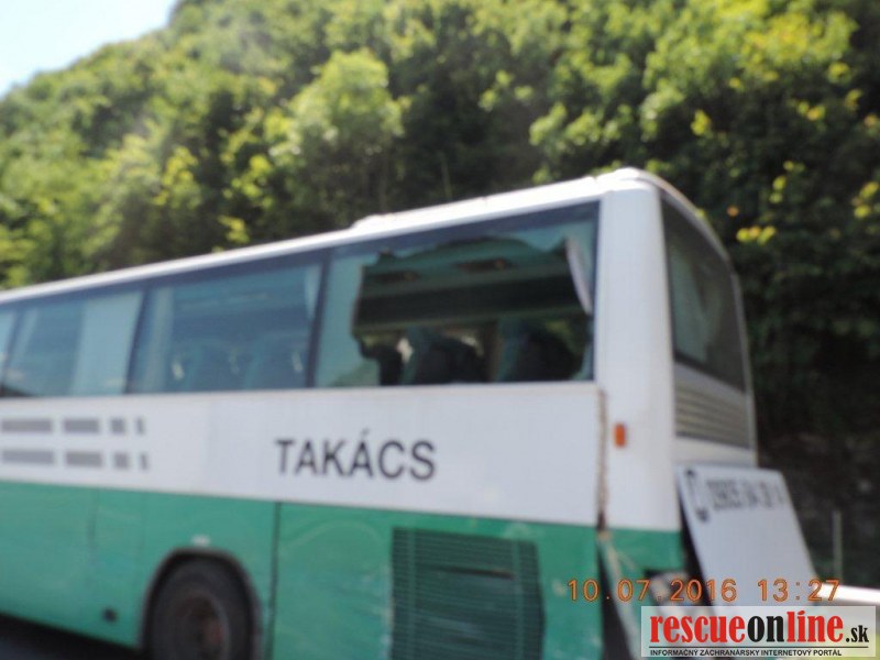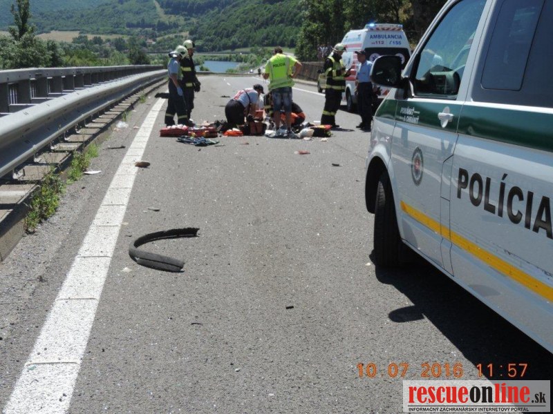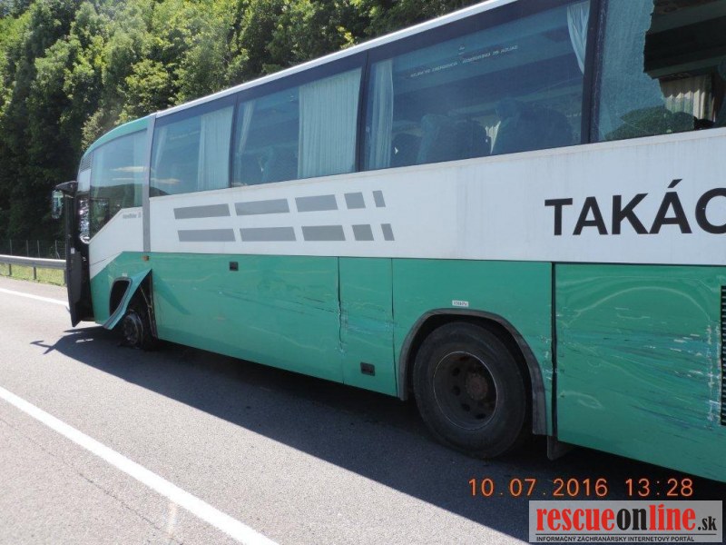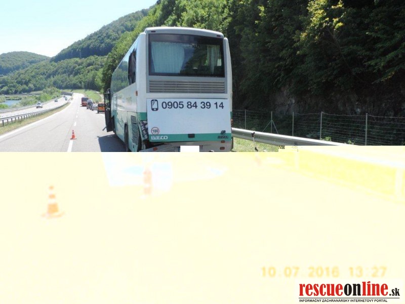 KRPZ Banská Bytrica /MM/ Diaľničná polícia v Žiari nad Hronom vyšetruje dopravnú nehodu, ktorá sa stala v nedeľu (10.7.) krátko po 11.00 hodine na rýchlostnej ceste R1, v smere jazdy od Žiaru nad Hronom na Zvolen. 50-ročný vodič viedol autobus Iveco Irizar po rýchlostnej ceste R1 v pravom jazdnom pruhu, kde dostal defekt na predné ľavé koleso, v dôsledku čoho prešiel v miernej pravotočivej zákrute s autobusom do ľavého jazdného pruhu a ľavou časťou autobusu kontaktoval stredové zvodidlá na ľavej strane vozovky. Po náraze do zvodidiel sa autobus vrátil do pravého jazdného pruhu, kde zastavil. V dôsledku nárazu došlo k vymršteniu dvoch prepravovaných osôb na vozovku, cez posledné bočné okno na ľavej strane autobusu, pričom obe osoby ostali ležať na vozovke. Poškodený autobus ostal stáť pri pravom okraji vozovky. Následkom dopadu na vozovku utrpel 85-ročný muž z Bratislavy ťažké zranenia, ktorým aj napriek zásahu rýchlej zdravotnej pomoci, po intenzívnom oživovaní, podľahol. U usmrtenej osoby mieru a rozsah zranení určí súdna pitva. 83-ročná žena z Bratislavy utrpela v dôsledku nárazu na vozovku ťažké zranenia s dobou liečenia nad 42 dní. Požitie alkoholických nápojov u vodiča bolo vylúčené vykonaním dychovej skúšky. Vzniknutá škoda na poškodenom autobuse a na zvodidlách je odhadnutá na 4-tisíc eur.
