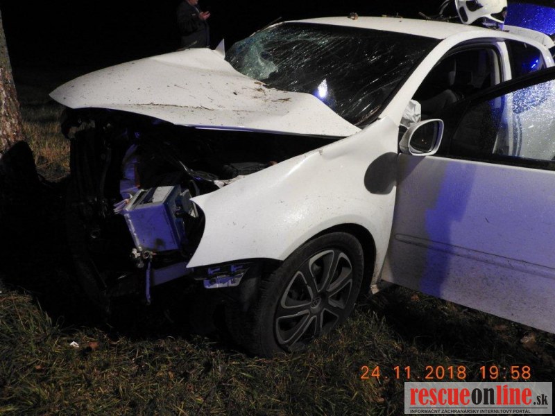 KRPZ Trnava |MM| Polícia dokumentovala dopravnú nehodu, ktorá sa stala v sobotu (24.11.) o 19.05 h na ceste tretej triedy medzi obcami Ohrady a Trhová Hradská (okr. Dunajská Streda). 18 ročný vodič viedol VW Golf, pričom v ľavotočivej zákrute vyšiel z nezistených príčin mimo cestu, kde narazil do stromu. V aute sa okrem vodiča viezli ďalší štyria mladí ľudia (15,15,18,20r.), ktorí v dôsledku nárazu utrpeli ťažké zranenia. Vodič sa zranil ľahko, dychovou skúškou mu nebolo zistené požitie alkoholu.