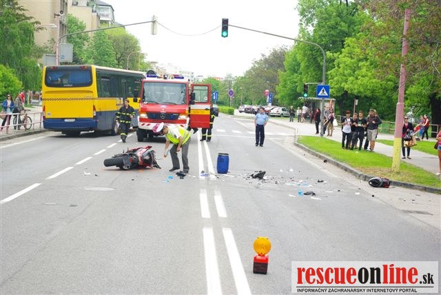 KRPZ Trnava |MM| Polícia vyšetruje dopravnú nehodu, pri ktorej zahynul motocyklista a hľadá svedkov, ktorí nehodu videli. V pondelok 6. mája o 14.00 h došlo v Trnave na Hospodárskej ulici k zrážke osobného auta Hyundai i20 a motocykla Kawasaki. 18 ročný vodič zo Zavara viedol auto po Hospodárskej ulici a chcel odbočiť vľavo na Námestie SNP. Pri odbočovaní sa auto zrazilo s oproti idúcim motocyklom, ktorý viedol 36 ročný muž z Rohožníka. Pri dopravnej nehode utrpel motorkár zranenia, ktorým po prevoze do nemocnice podľahol. Vodiča auta podrobili policajti dychovej skúške, ktorej výsledok bol negatívny. Polícia vyšetruje príčiny a mieru zavinenia dopravnej nehody. Zároveň žiadame svedkov, ktorí túto nehodu videli, aby sa prihlásili na polícii a prispeli tak k jej objasneniu.