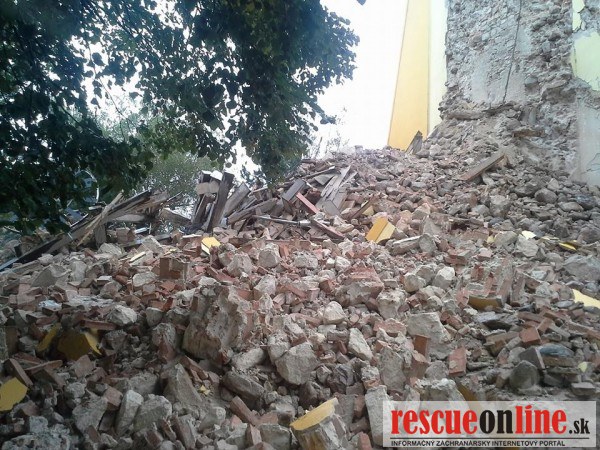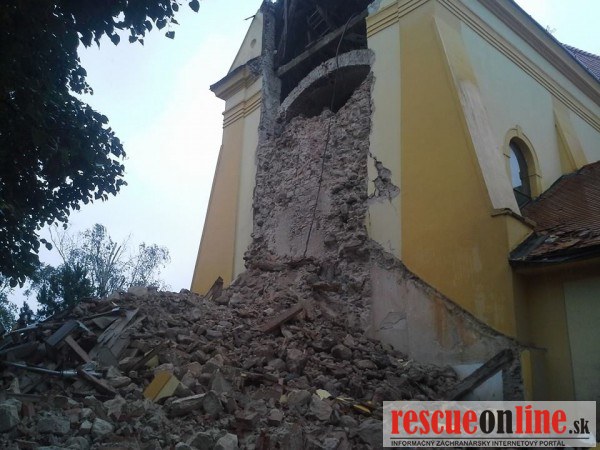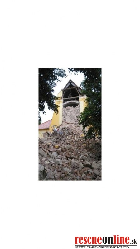 Pri páde kostolnej veže v obci Láb sa nikto nezranil