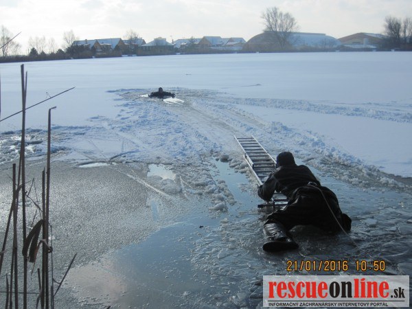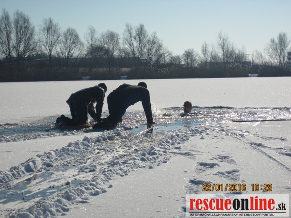 MVSR |MM| Okresné riaditeľstvo HaZZ v Pezinku zorganizovalo v piatok 22. januára pre hasičov z Pezinka a Senca výcvik na záchranu topiaceho sa človeka. Účelom výcviku bolo precvičenie náročnejších postupov záchrany osoby prepadnutej pod ľadom pri sťažených podmienkach. Hasiči na jazere Kejda v Pezinku mali za úlohu osobu z vody nielen vytiahnuť, ale jej i poskytnúť predlekársku prvú pomoc. Akciu opakovali niekoľkokrát, pričom používali rôzne techniky a pomôcky (lano, bort, záchrannú kocku, rebríky, vrhačku, hasičské hadice a pod).