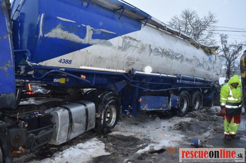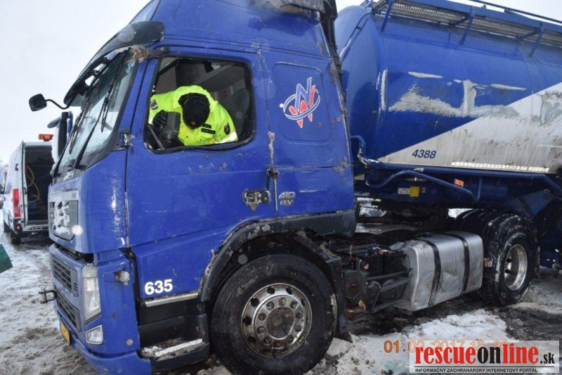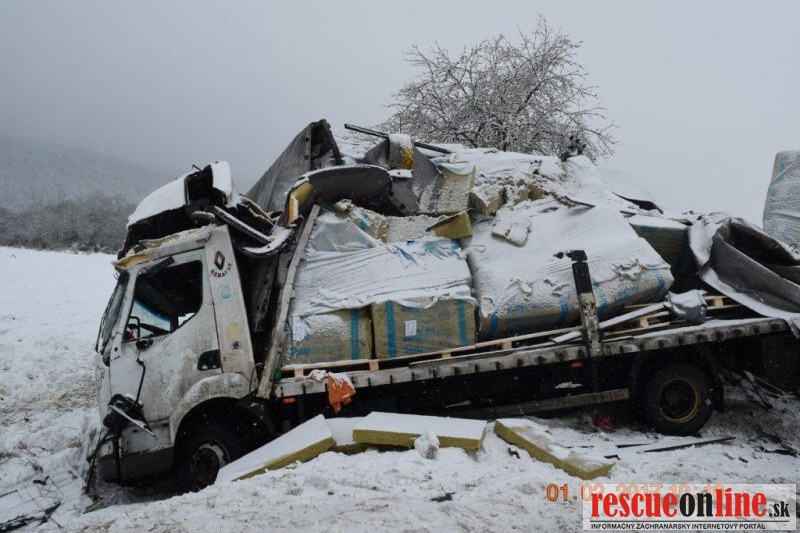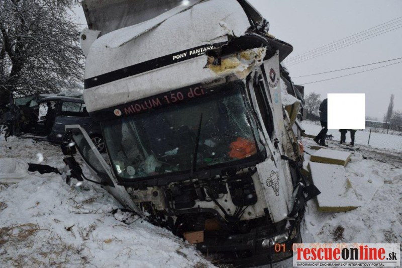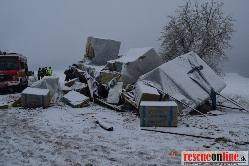 KRPZ Banská Bystrica |MM| Polícia v Lučenci vyšetruje dopravnú nehodu, ktorá sa stala v stredu (1.2.) o 8.40 hodine, na ceste I/71 v obci Fiľakovské Kováče, časť Fiľakovské Kľačany. Zo zavinenia dopravnej nehody je dôvodne podozrivý 50-ročný vodič súpravy ťahača Volvo s návesom, občan Maďarska. Pri prejazde pravotočivej zákruty v smere od Fiľakova na Lučenec v obci Fiľakovské Kováče časť Fiľakovské Kľačany, pravdepodobne v dôsledku neprispôsobenia rýchlosti najmä svojím schopnostiam vlastnostiam nákladu ako aj poveternostným podmienkam, na zasneženej vozovke sa dostal s jazdnou súpravou do šmyku, pričom návesom prešiel do protismernej časti vozovky v čase, keď v protismere od Lučenca na Fiľakovo prichádzalo osobné motorové vozidlo Opel Zafira, ktoré viedol 43-ročný vodič z Radzoviec, ktoré bolo návesom zachytené a odhodené do pravej priekopy. Po tomto strete náves maďarskej jazdnej súpravy ešte zachytil prechádzajúcu jazdnú súpravu Renault Midlum s prívesom, ktorú viedol 47-ročný vodič z okresu Levice. Jeho jazdná súprava bola nárazom odhodená do pravej priekopy. Následkom týchto stretov vozidiel sa ťahač Volvo s návesom prevrátil na ľavú stranu a návesom ešte zachytil oplotenie záhrady ako aj betónový stĺp elektrického vedenia. Jazdná súprava ostala prevrátená cez celú vozovku a tým sa cesta I/71 stala úplne neprejazdná.