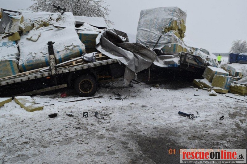 Pri zrážke dvoch kamiónov a osobného auta jedna osoba zomrela, 5 osôb sa zranilo z toho 3 osoby ťažko