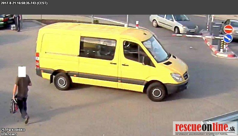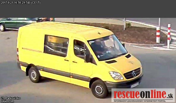 KRPZ Banská Bystrica |MM| Polícia v Banskej Bystrici objasňuje dopravnú nehodu, ktorá sa stala 21. 8. na parkovisku pri obchodnom dome Lidl na ulici Nad plážou v Banskej Bystrici. Podozrivé vozidlo bolo zachytené bezpečnostným kamerovým systémom a jedná sa o špecifické motorové vozidlo Mercedes-Benz Sprinter, žltej farby, štvordverové, pravdepodobne 5 miestne, v strede vozidla sklenená výplň, odsúvacie dvere len na pravej strane, vozidlo by malo byť zaradené do druhu BB skriňová dodávka, kategória N1, typ Sprinter pravdepodobne 906, vozidlo by malo byť do 3500kg. Predpokladaný rok výroby je 2008 až 2013. Pri nehode došlo k poškodeniu zaparkovaného motorového vozidla, pričom vinník na žltej dodávke z miesta nehody odišiel. Prosíme svedkov tejto dopravnej nehody, aby nám poskytli akékoľvek informácie, ktoré nám pomôžu nehodu objasniť. Svedkovia sa môžu ozvať telefonicky na t. č. 158, prípadne osobne na ktoromkoľvek útvare PZ.