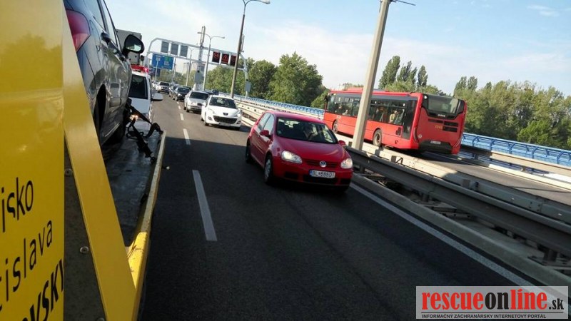 Odťahovka Jaslovský |MM| Pravdepodobne ranná námraza na moste Apolo v našom hlavnom meste sa mohla podieľať na spôsobení dopravnej nehody. Vodička osobného vozidla Peugeot dostala šmyk, vybočila zo svojho jazdného pruhu a narazila do zvodidiel. Následkom nehody vznikli kolóny vozdiel.