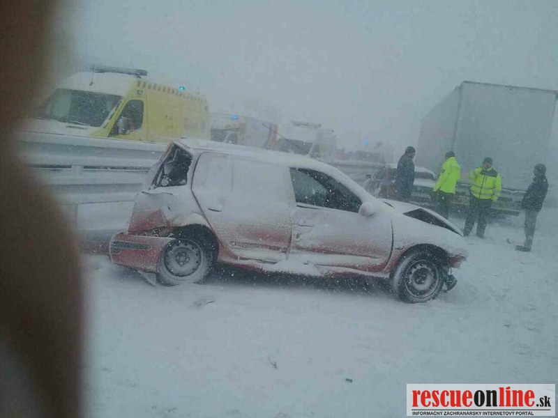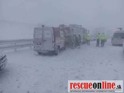 Všetci účastníci reťazovej dopravnej nehody sú už evakuovaní z havarovaných vozidiel. Osoby, ktoré nie sú zranené, sú v evakuačných autobusoch HaZZ, kde sú im poskytnuté deky a teplé nápoje. Zranené osoby boli prevezené do okolitých nemocníc. Hasiči budú v spolupráci s odťahovou službou pracovať na uvoľňovaní cestnej komunikácie.