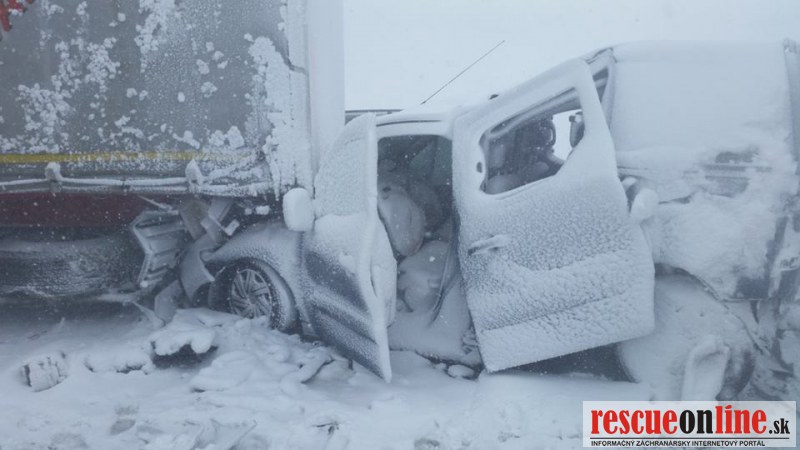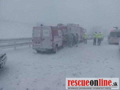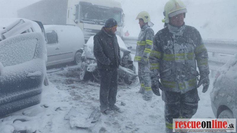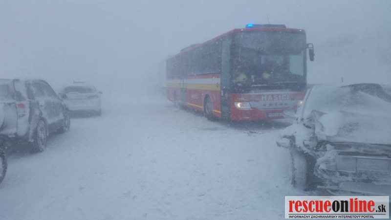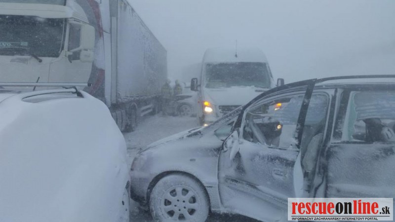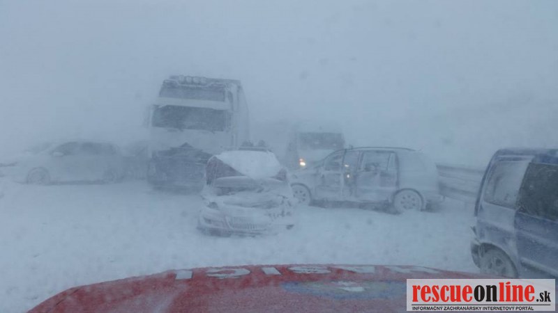Hasiči momentálne zasahujú pri reťazovej dopravnej nehode, ktorá sa stala na severnej D1 medzi Popradom a Spišským Štvrtkom. Podľa predbežných informácií sa na mieste zrazilo 30 - 40 vozidiel, pričom počet zranených osôb je zatiaľ 4. Hasiči vykonávajú na havarovaných vozidlách protipožiarne opatrenia, prehľadávajú autá a evakuujú z nich účastníkov nehody. Situáciu komplikuje veľmi nepriaznivé počasie - silný vietor a snehová búrka. Na miesto udalosti smerujú 2 evakuačné autobusy HaZZ.