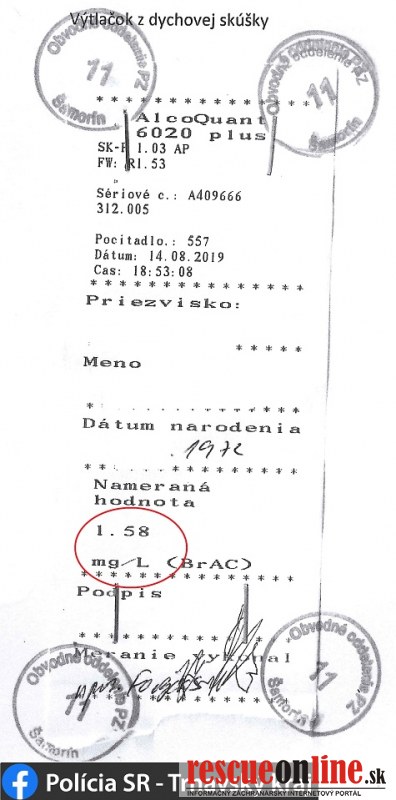 KRPZ Trnava |MM| Keďže vodička v Šamoríne, časti Čilistov (okr. Dunajská Streda), jazdila na poškodenom aute Citröen C3, neunikla pozornosti policajnej hliadky. V stredu (14.8.) krátko pred 19.00 h ju zastavili policajti a počas kontroly vykonali aj dychovú skúšku na alkohol. 47 ročnej žene z Bratislavy namerali 1,58 mg alkoholu, čo je v prepočte 3,29‰!