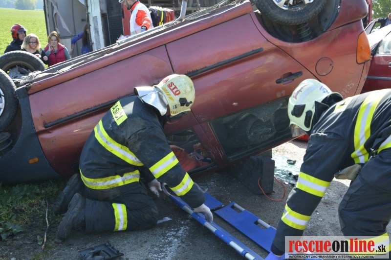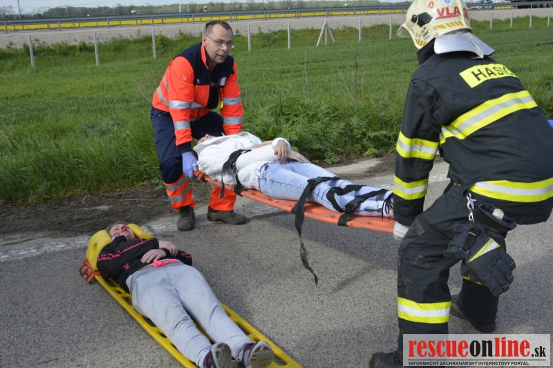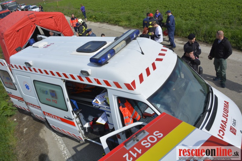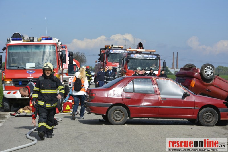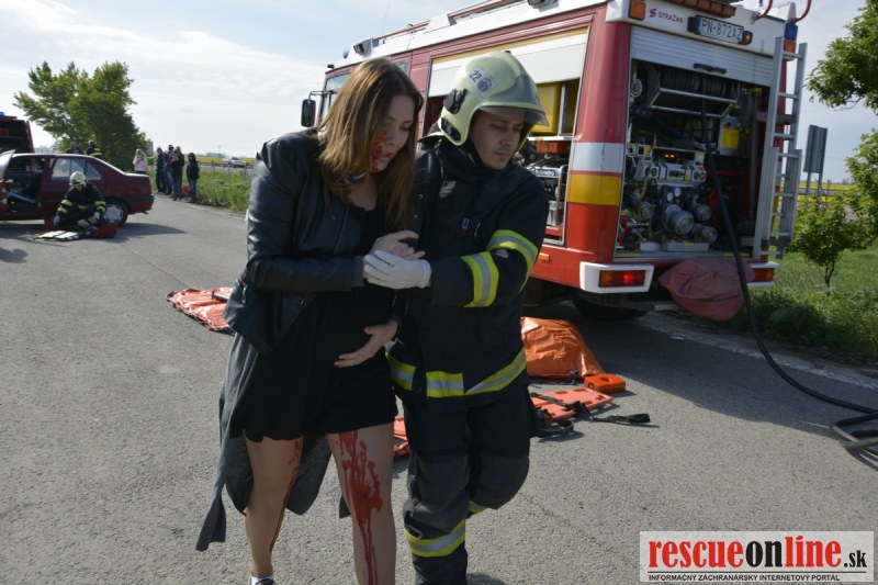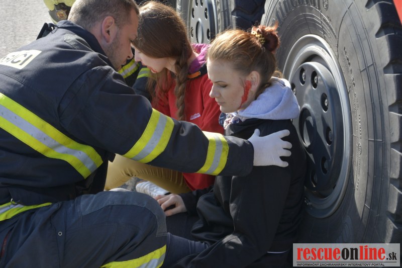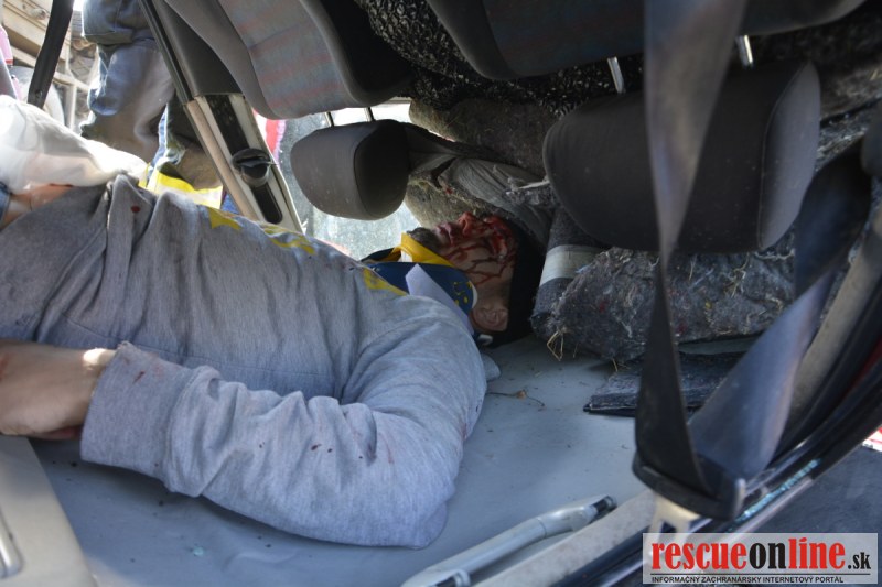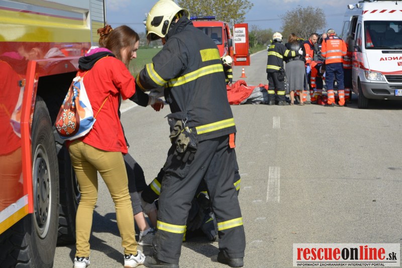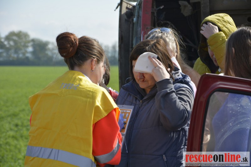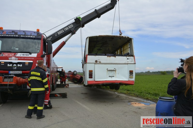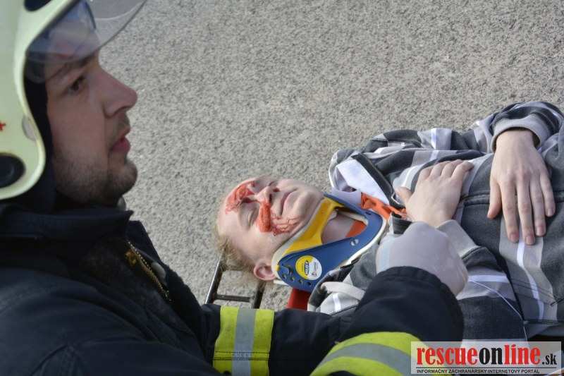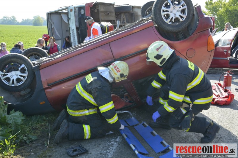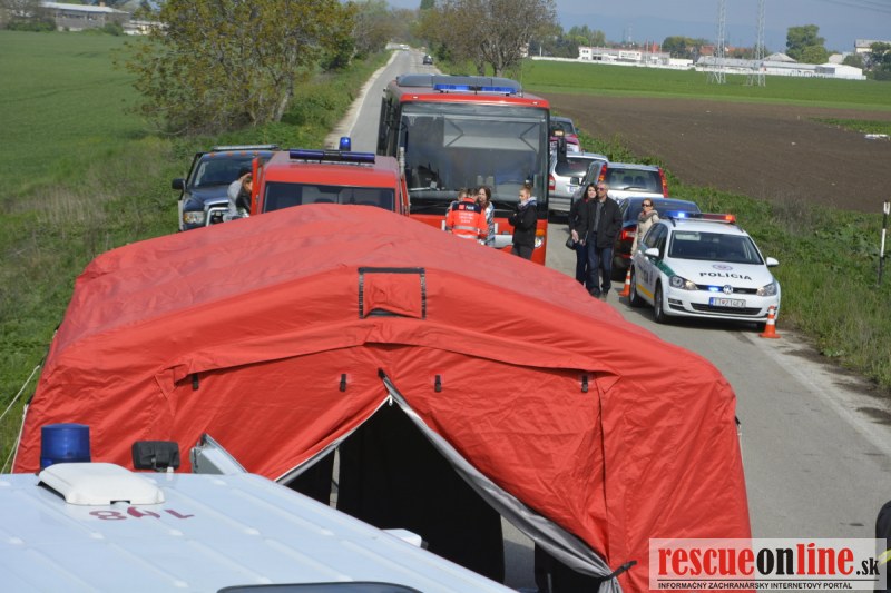 Simulácia dopravnej nehody autobusu a troch osobných vozidiel vo Vlčkovciach