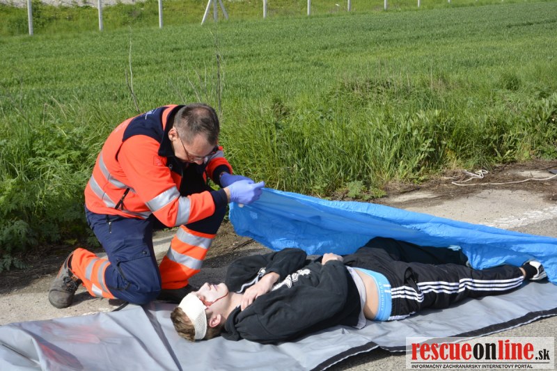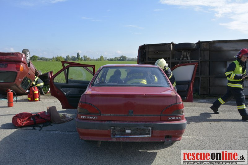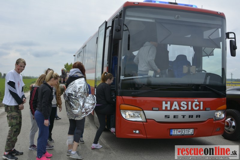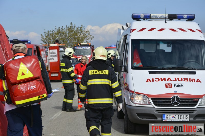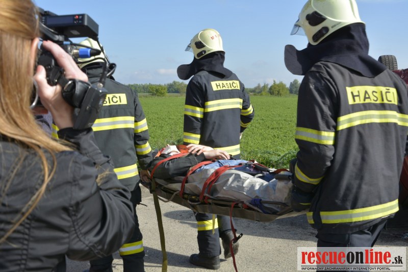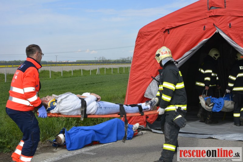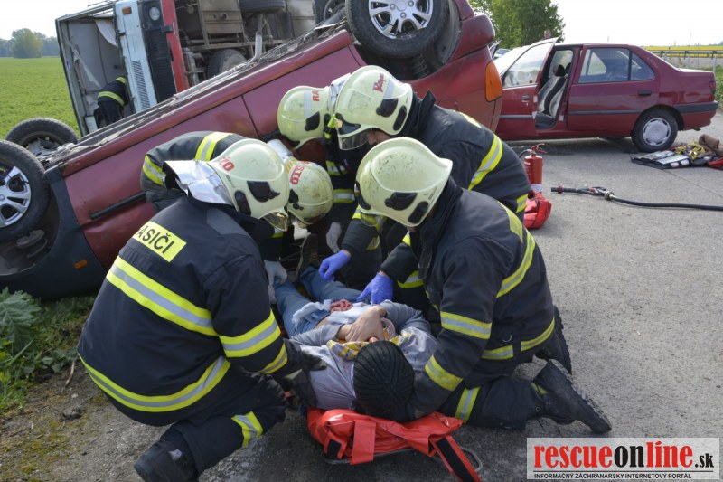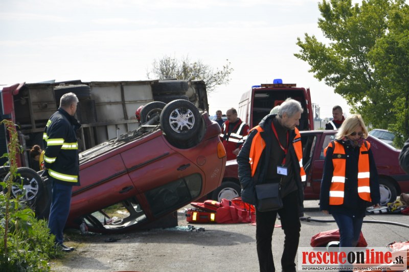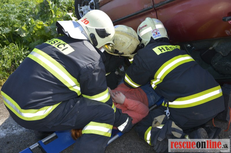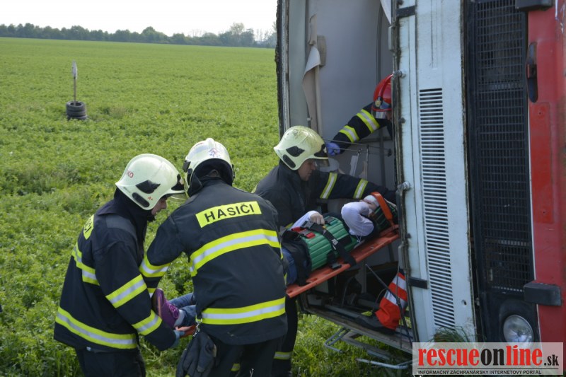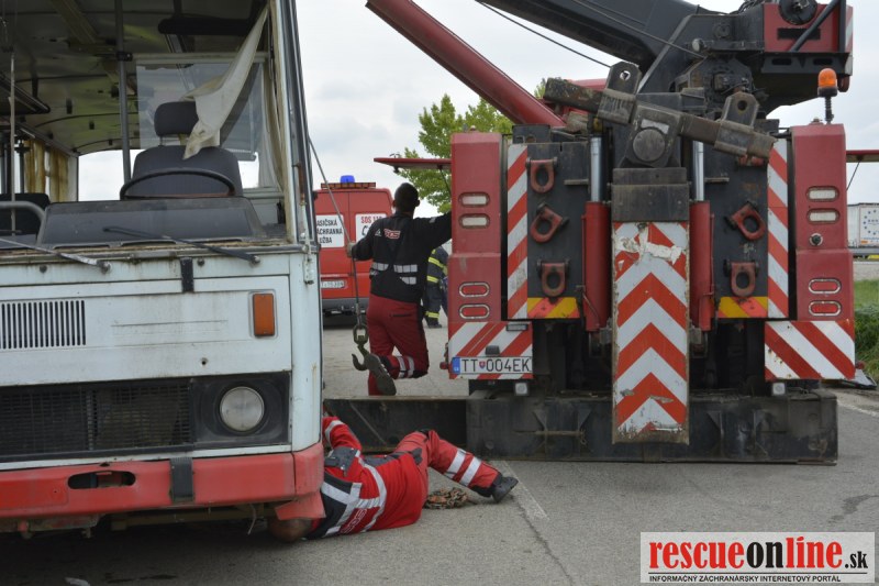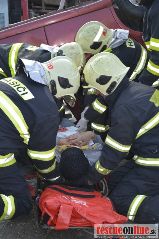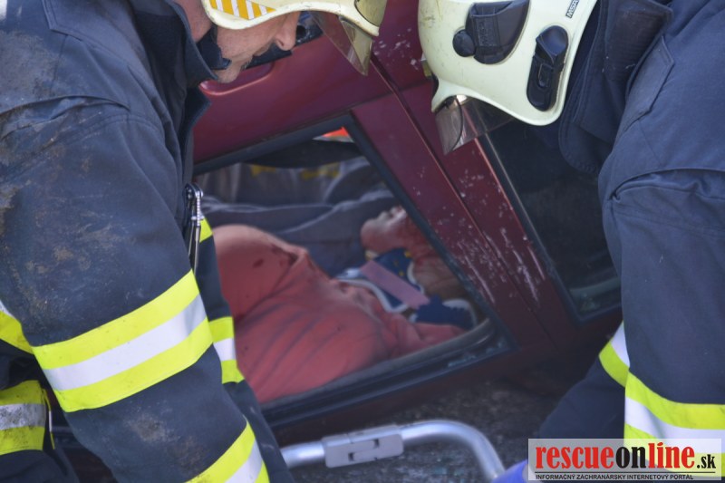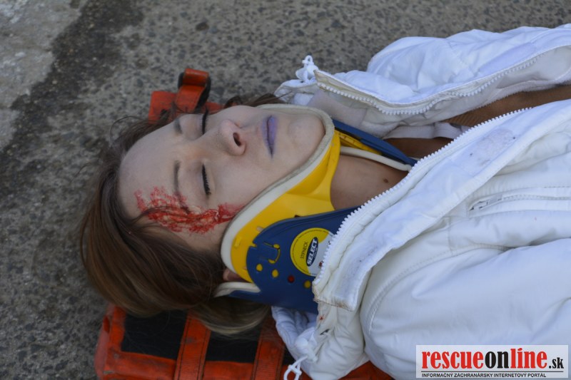 Simulácia dopravnej nehody autobusu a troch osobných vozidiel vo Vlčkovciach