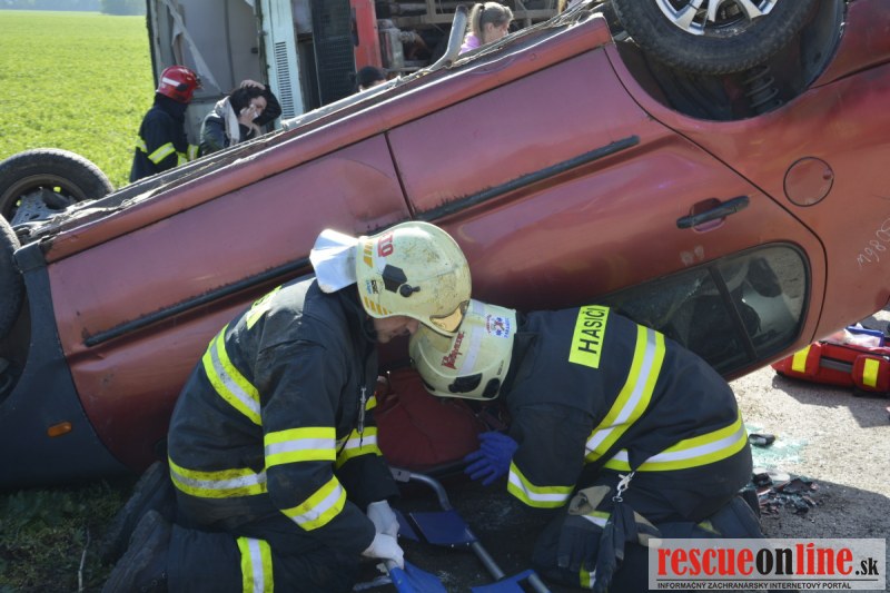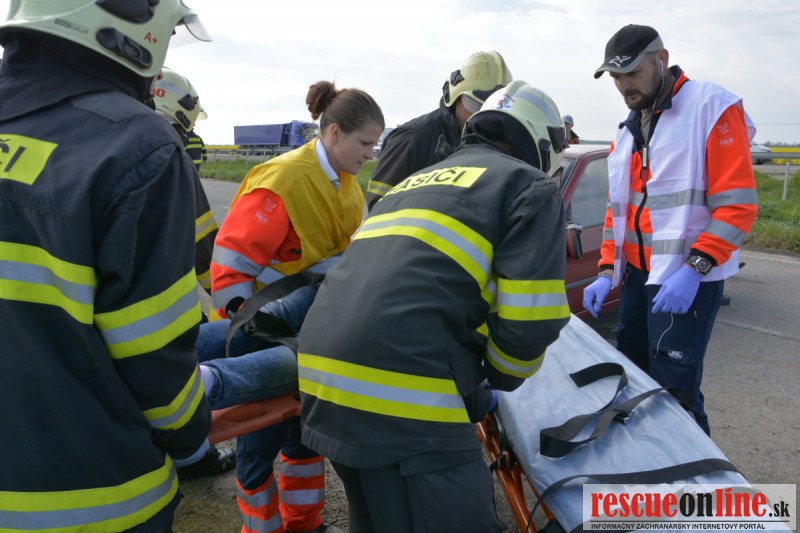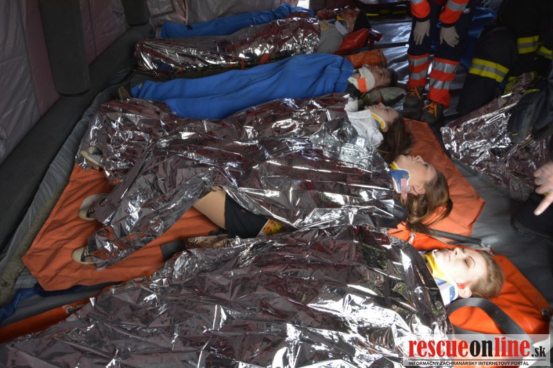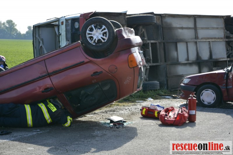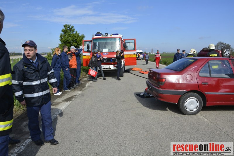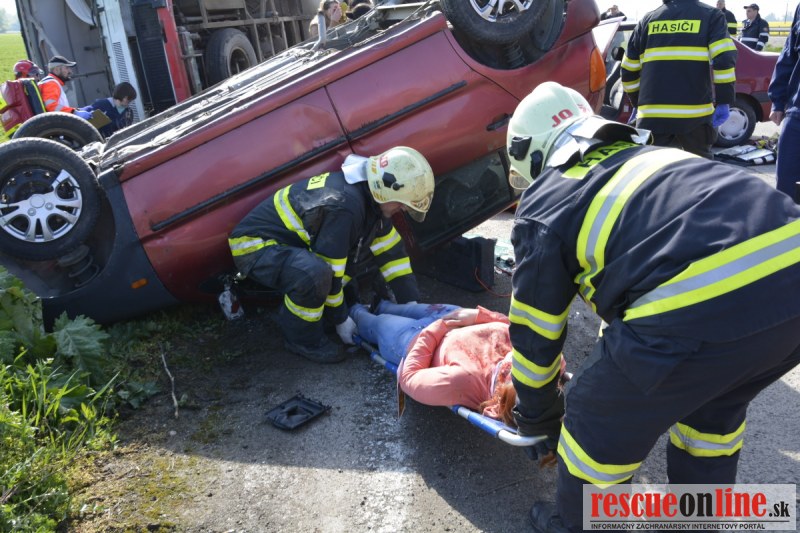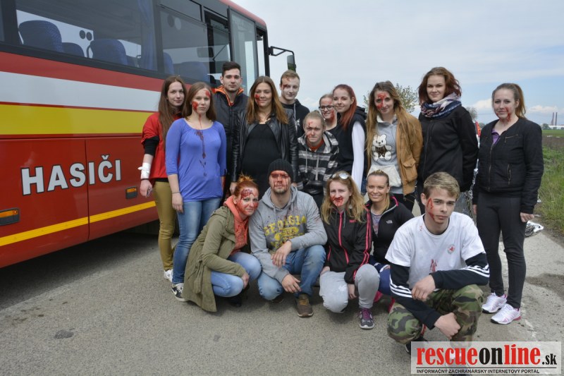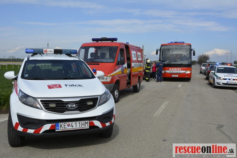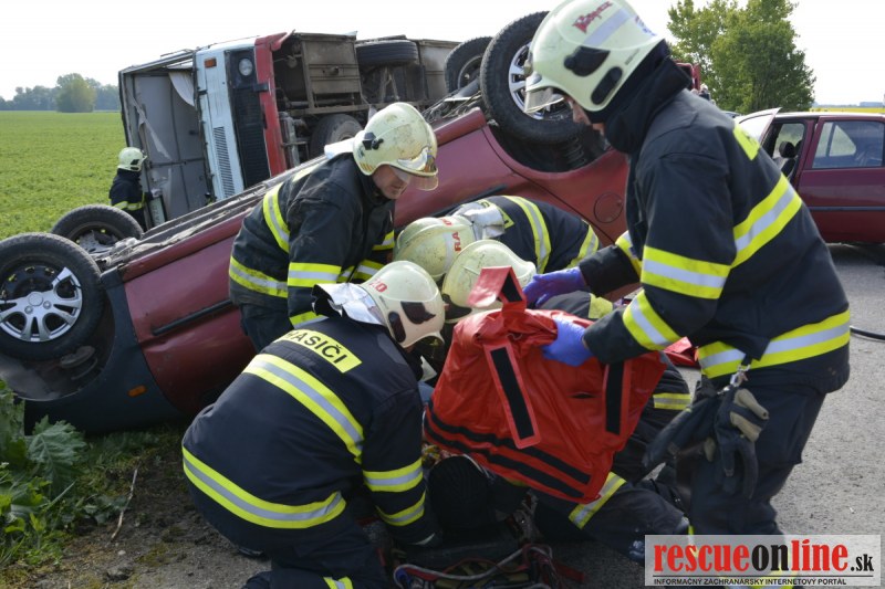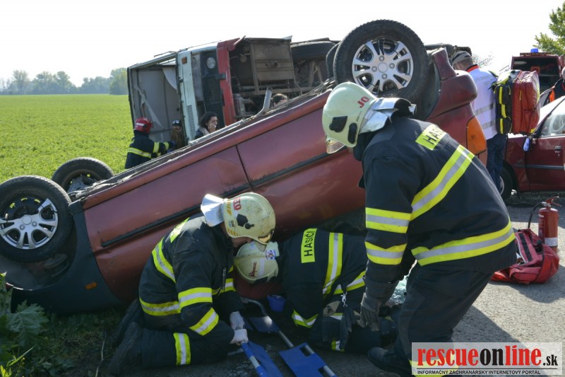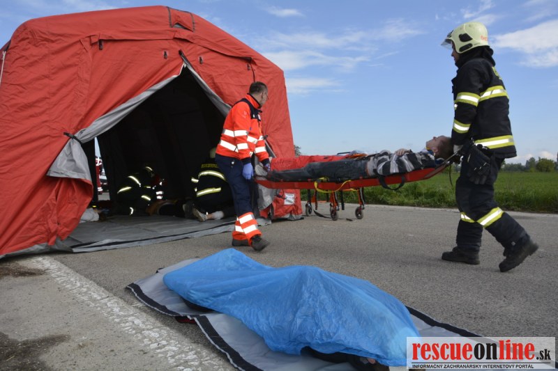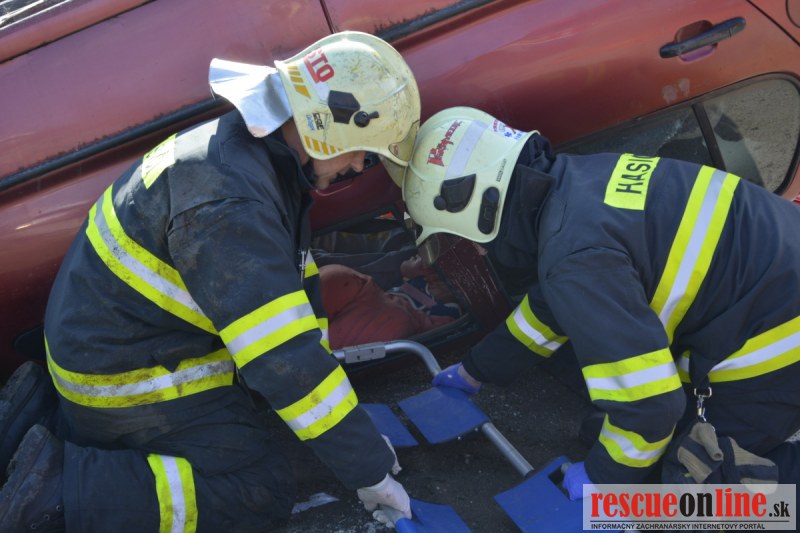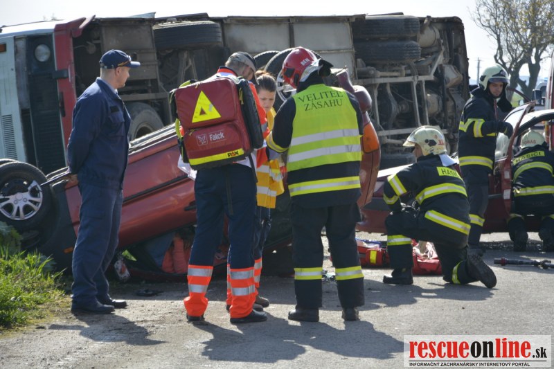 Simulácia dopravnej nehody autobusu a troch osobných vozidiel vo Vlčkovciach