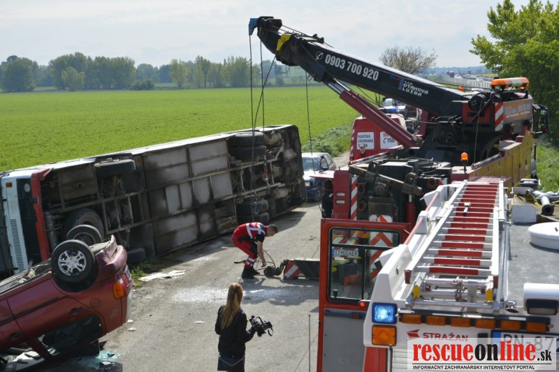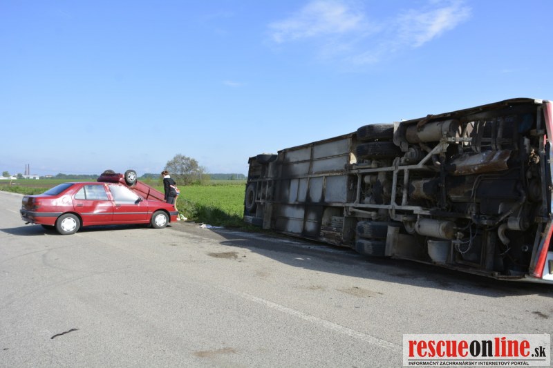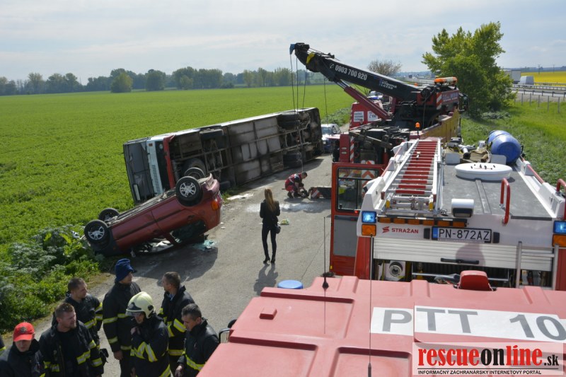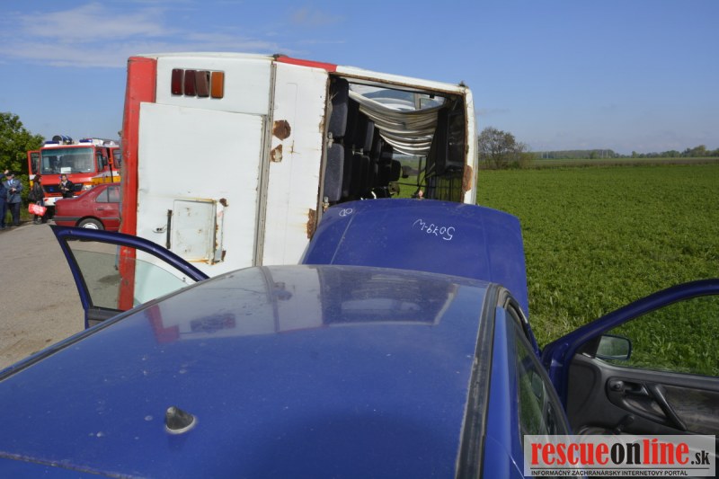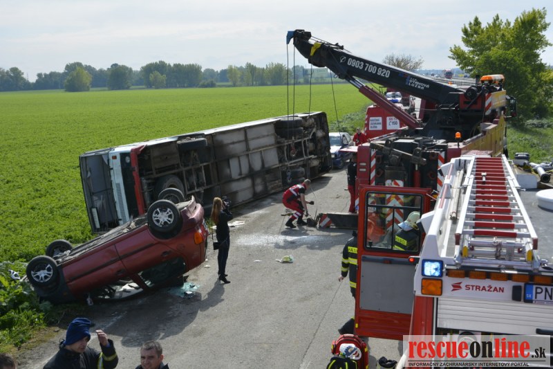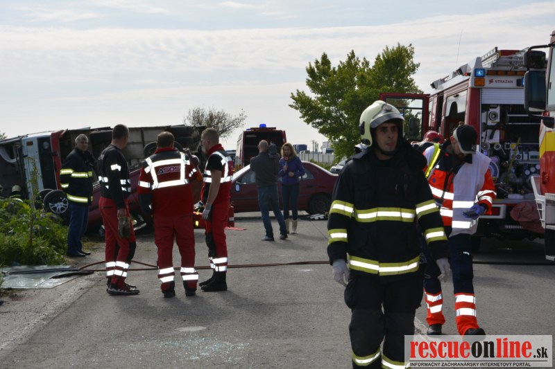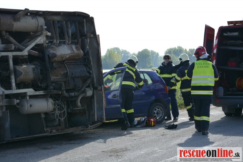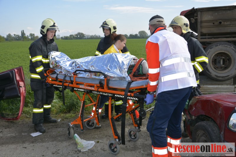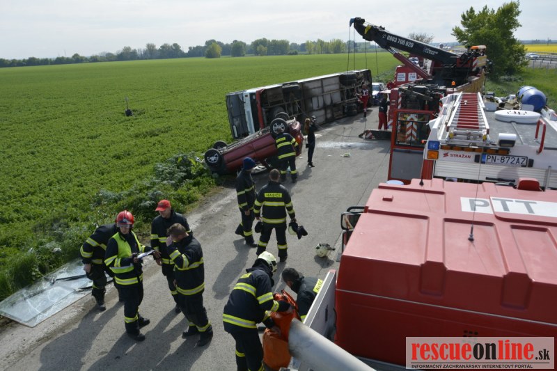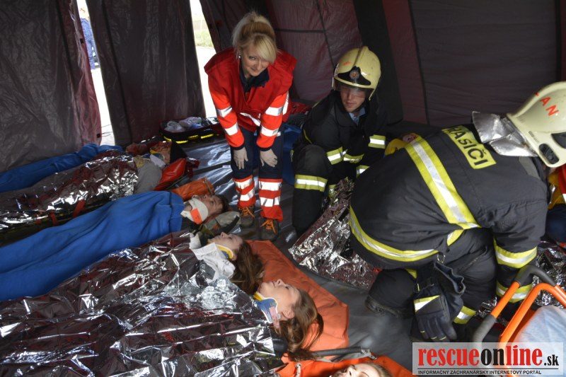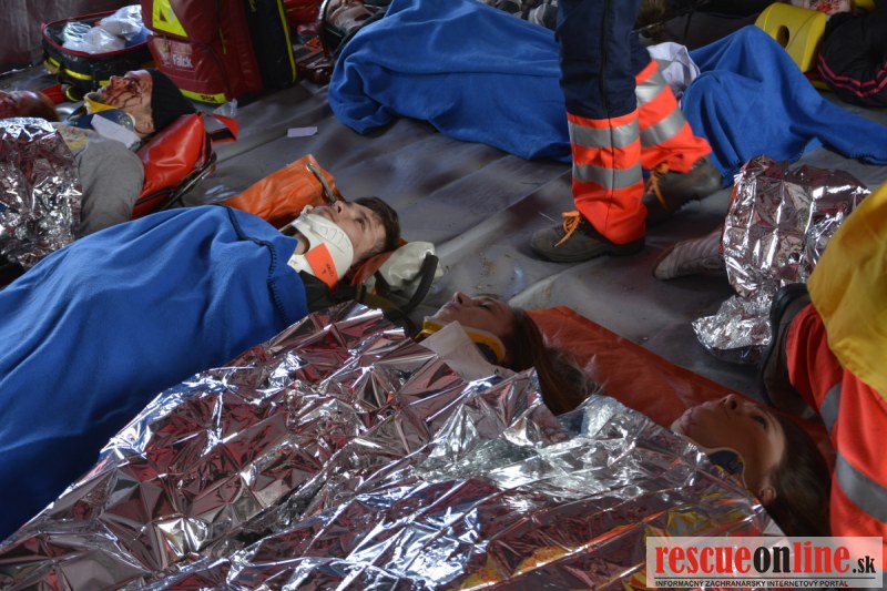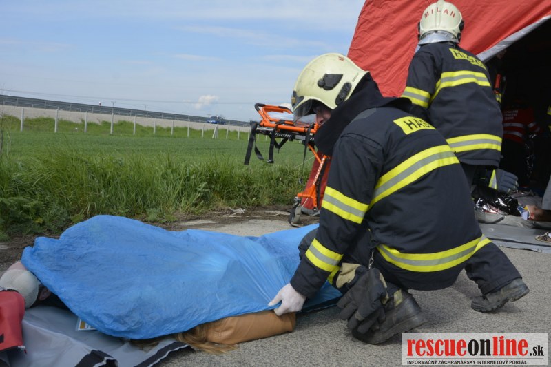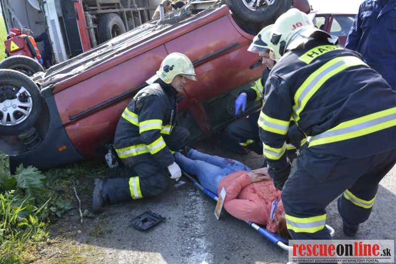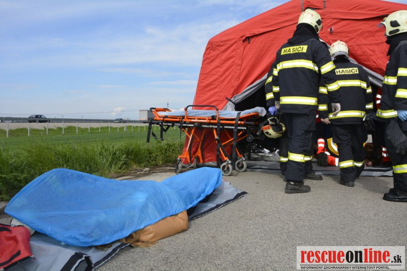 Simulácia dopravnej nehody autobusu a troch osobných vozidiel vo Vlčkovciach