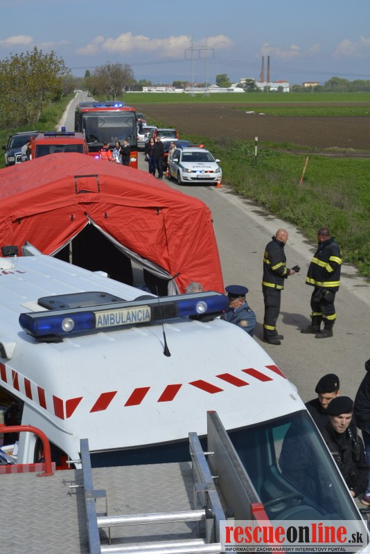 "Dňa 28. apríla 2016 sa v obci Vlčkovce, okres Trnava uskutočnilo taktické cvičenie Okresného riaditeľstva Hasičského a záchranného zboru v Trnave. Námetom cvičenia bolo vyslobodzovanie a záchrana postihnutých osôb z motorových vozidiel a cestných dopravných vozidiel hromadnej dopravy, a zabránenie vzniku možných ekologických havárii. Cvičenie prebehlo v obci Vlčkovce, kde bola simulácia dopravnej nehody autobusu a troch osobných motorových vozidiel. Následkom dopravnej nehody bolo 25 osôb zranených. Účelom cvičenia bolo preveriť činnosť zložiek IZS, ich vzájomnú komunikáciu, zdokonaliť si praktické návyky a zručnosti a samozrejme precvičiť akcieschopnosť a pripravenosť hasičskej techniky. Taktické cvičenie splnilo účely zamerané na precvičenie stanovených úloh, spolupráca s jednotlivými zložkami prebehla bez komplikácií." uviedla kpt. Bc. Júlia Kedrová, hovorkyňa KR HaZZ v Trnave.