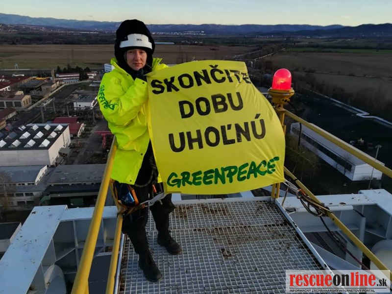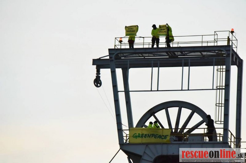 Na mieste protestu Greenpeace zasahujú záchranári, hasiči a polícia. Majú záujem aktivistov dostať z veže dole, no títo sú pripravení na veži zostať do 16.00 hod. Pôvodným úmyslom aktivistov bolo na protest proti ťažbe uhlia v Hornonitrianskych baniach Prievidza vyvesiť 15 metrový banner, od čoho však ustúpili z obáv o bezpečnosť pre nevhodné poveternostné podmienky.