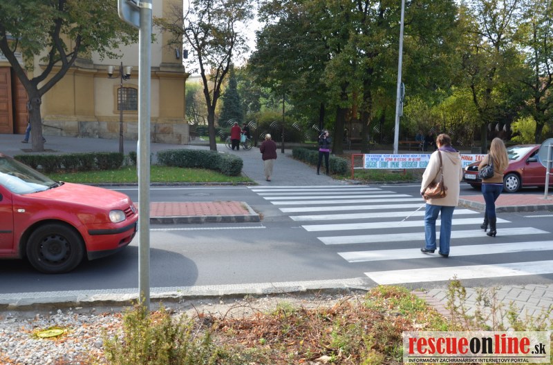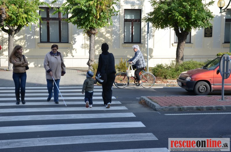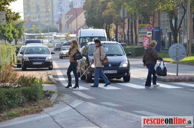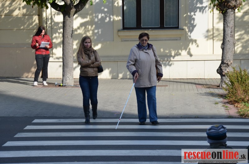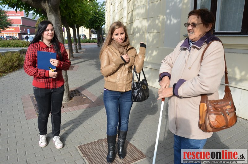 Sereď | Aj vodiči prechádzajúci po ulici M.R.Štefánika v Seredi si dnes predpoludním mohli všimnúť prebiehajúcu akciu Dňa bielej palice, ktorú pri príležitosti Svetového dňa bielej palice organizovala Únia nevidiacich a slabozrakých Slovenska. Skutočne slabo vidiaca pani v doprovode pracovníčky únie prechádzala cez priechod pre chodcov pri kostole a policajná hliadka sledovala reakcie vodičov. Ako vyplýva z vyjadrenia samotnej pracovníčky Únie nevidiacich sereďskí vodiči sa správali ohľaduplne.