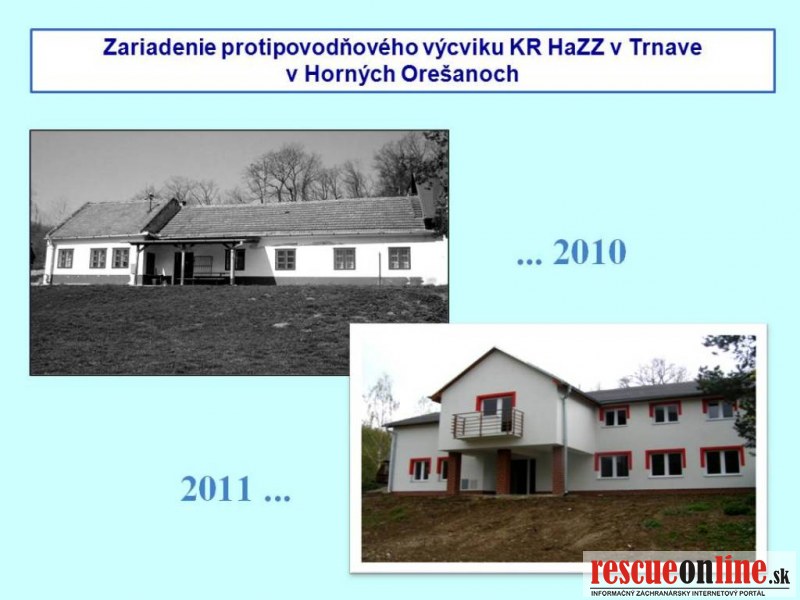 Pri tejto príležitosti minister vnútra a zástupca prezídia HaZZ vo svojich príhovoroch zdôraznili potrebu pripravenosti HaZZ na udalosti, ktoré vznikajú pri povodniach na vodných tokov ale aj pri záplavách zo zvýšených lokálnych zrážok, prívalových dažďoch a pri rýchlom topení sa snehu v jarnom období. Preto bolo dôležité zrekonštruovať uvedené zariadenie, ktoré kvalitatívne umožní praktickú prípravu príslušníkov HaZZ na zásahy pri uvedených udalostiach. Riaditeľ KR HaZZ v Trnave vo svojom príhovore uviedol, že rekonštrukcia Zariadenia protipovodňového výcviku Horné Orešany začala vo februári roku 2010 abola ukončená v marci tohto roku. Na vykonanú rekonštrukciu bolo vynaložených spolu 246 517.- €, z toho 218 769.- € tvoril príspevok z Európskeho fondu regionálneho rozvoja. Zámerom rekonštrukcie Zariadenia protipovodňového výcviku Horné Orešany bola komplexná prestavba, nadstavba a prístavba objektu, zvýšenie kvality vykonávaných výcvikov, školení a záchranných prác, zníženie energetickej náročnosti prevádzky, doplnenie funkčných zložiek a vybavenia.